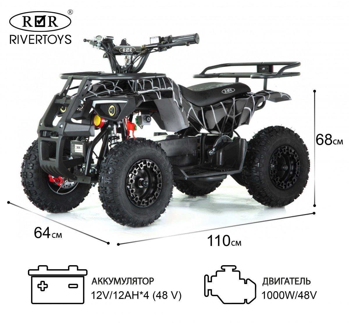 Артикул: TIKI-LUX-BLACK-SPIDERДетский электроквадроцикл RIVERTOYS TIKI LUX