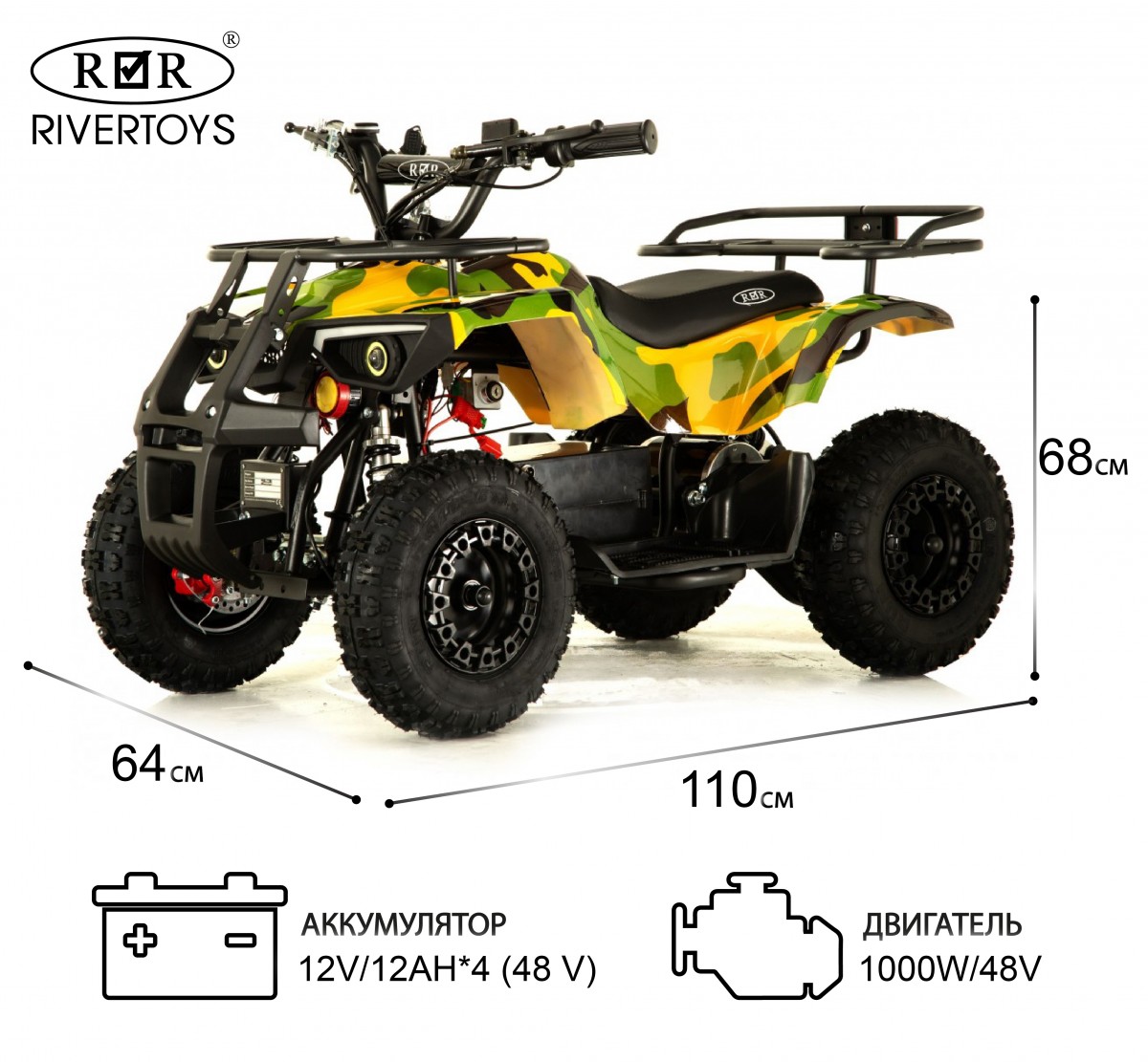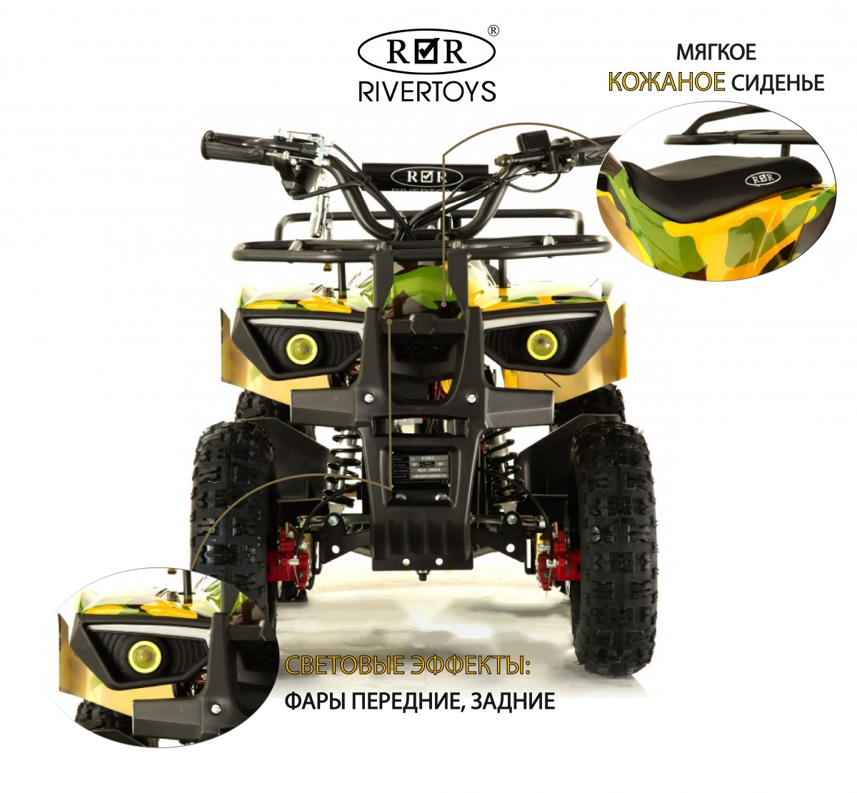 Артикул: TIKI-LUX-YELLOW-CAMOUFLAGEДетский электроквадроцикл RIVERTOYS TIKI LUX