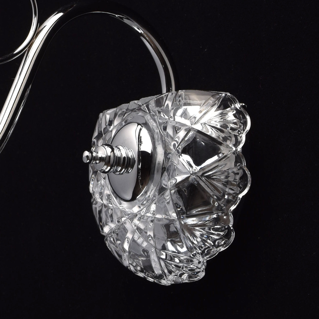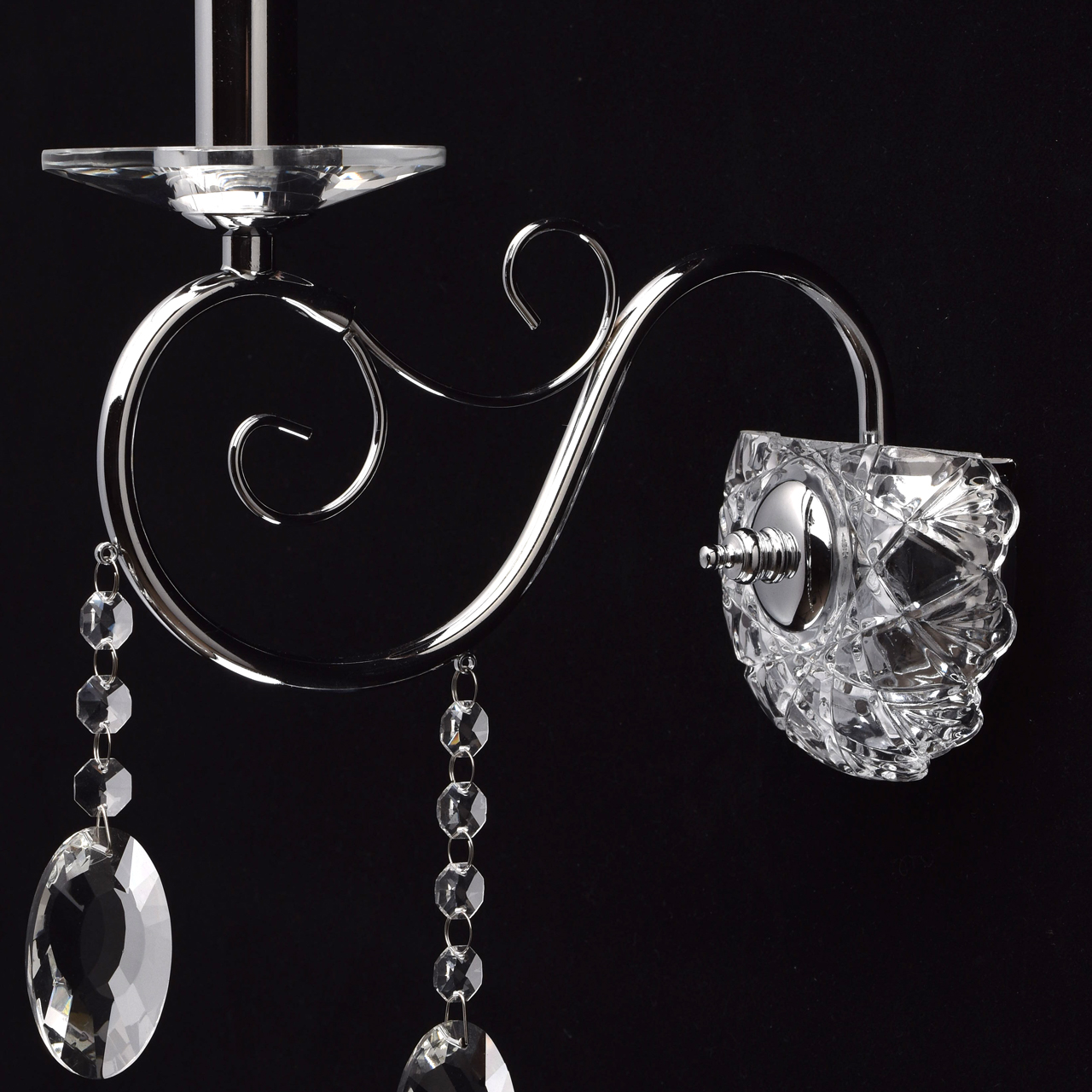 Основание бра: металл, гальванизировано в цвет хрома. Рожок и декоративный элемент выполнены по технологии проката на роликовом станке. Декоративная розетка выполнена из массива хрусталя. Основание закрыто декоративной розеткой , выполненной из стекла, отлитого в сложную форму. Светильник декорирован подвесками из хрусталя высокого качества формы октагон и овал.Тип помещения