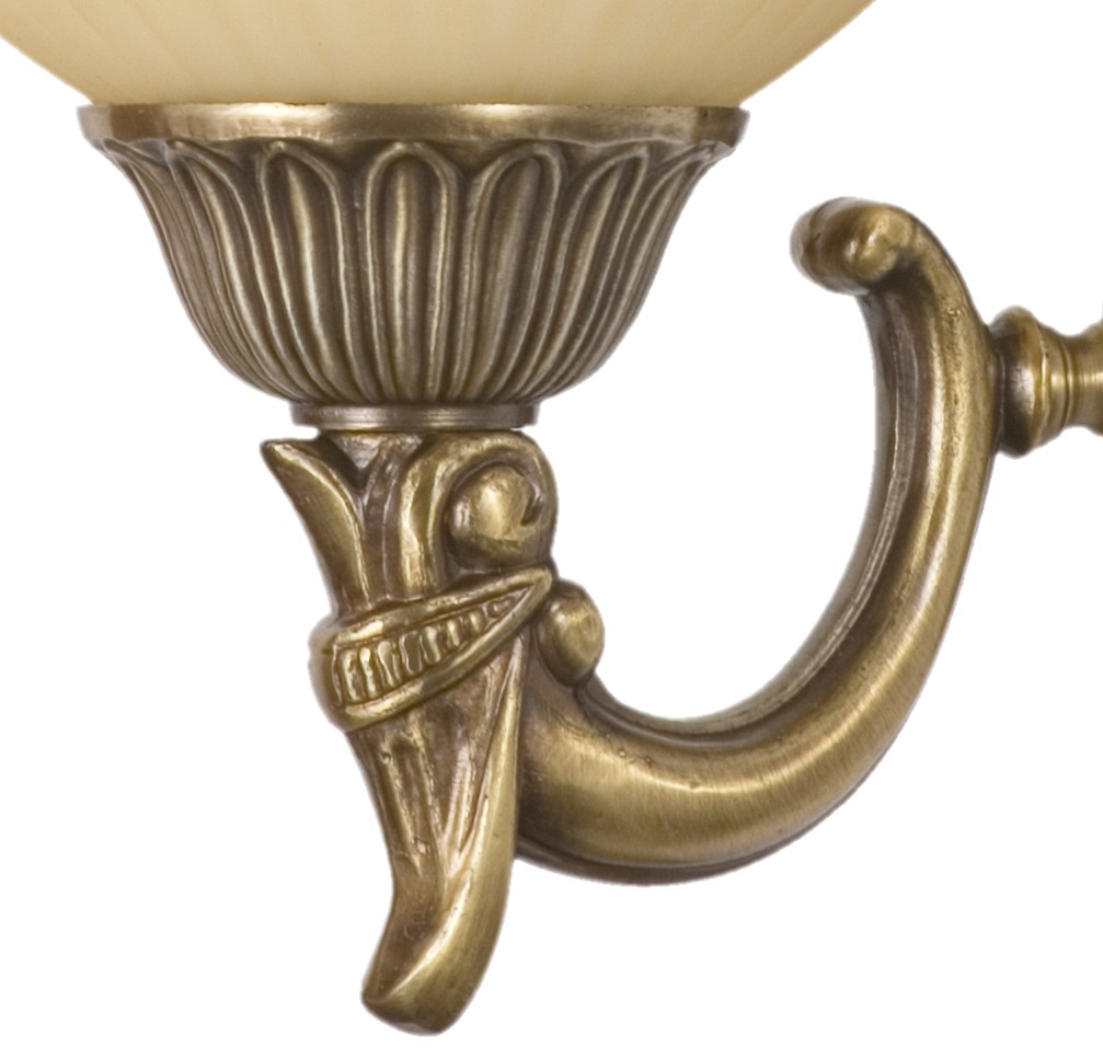 Арматура бра выполнена из сплава алюминия с цинком по технологии художественного литья и гальванизирована в цвет античной бронзы с эффектом патинирования. Плафон из стекла, окрашенного в массе в цвет ванили, отлит по сложной форме и матирован.Тип помещения