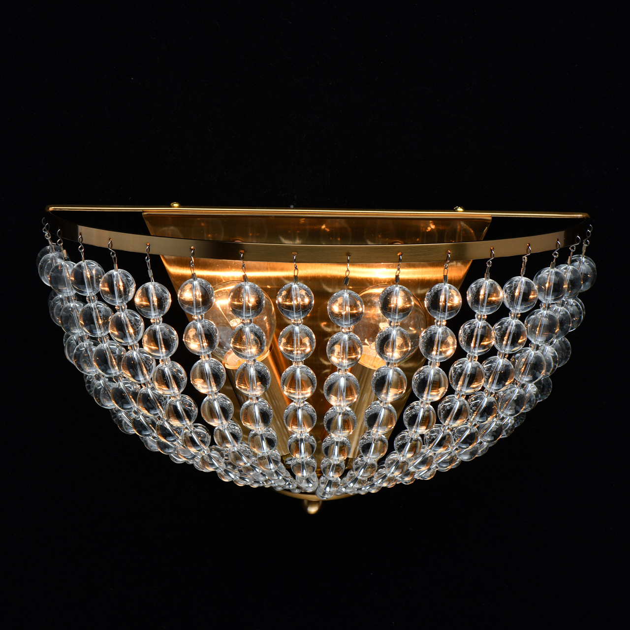 Основание светильника выполнено из металла и гальванизировано в цвет латуни. Светильник декорирован бусами из прозрачного хрустального стекла.Тип помещения