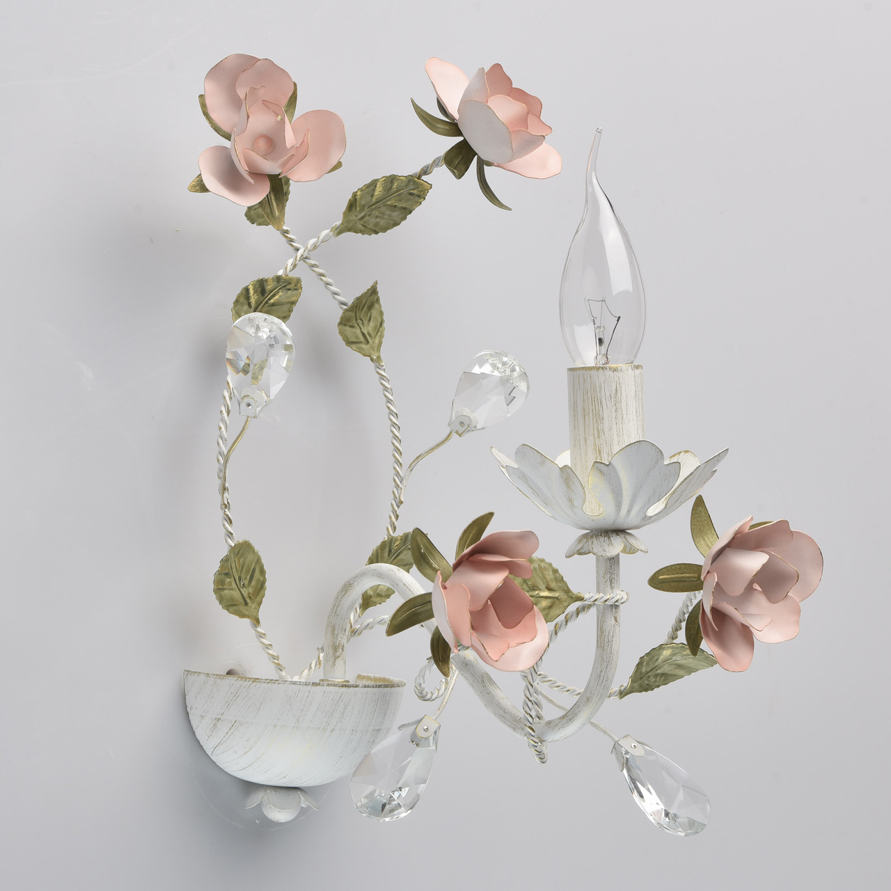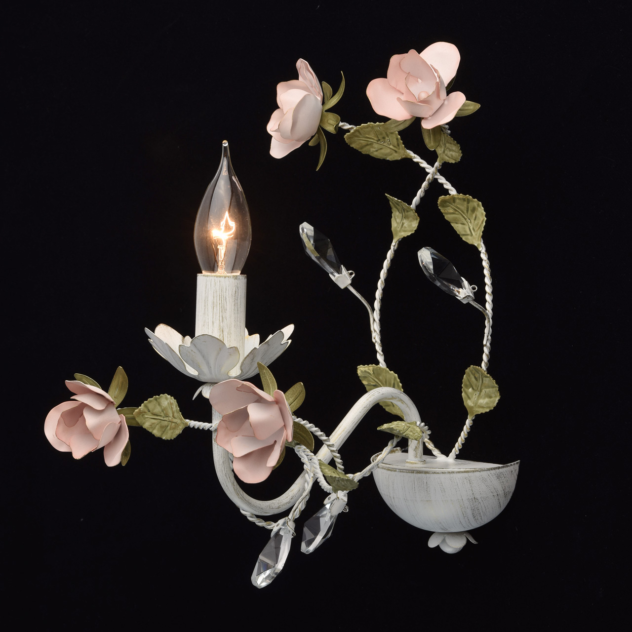 Бра Букет – это воодушевляющая цветочная композиция. Ее центральным элементом является свеча. В обрамлении изящных роз шиповника на тонких витых стеблях, она выглядит особенно живописно. Хрустальные декоративные элементы словно безудержные капельки росы, которые вот-вот начнут поблескивать и затрепещут, преломляя и отражая свет теплого огонька. Купить светильник бра Букет стоит для создания актуальных интерьеров в стиле рустик или прованс. Цветущие розы привнесут в окружающее пространство очарование, присущее самой природе. В комнате удастся сформировать романтическое настроение, оригинально обозначить зону отдыха.Преимущества модели