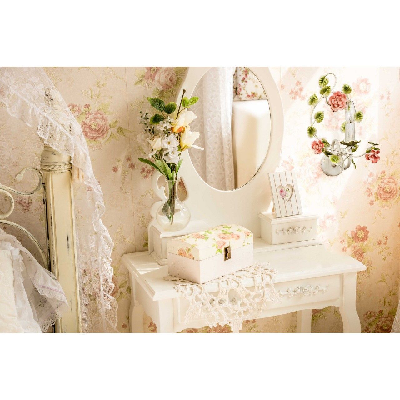 Металлическое основание окрашено в белый цвет с золотистой патиной. Декор - цветы из глазурированного фарфора с надглазурной росписью.Технология производства