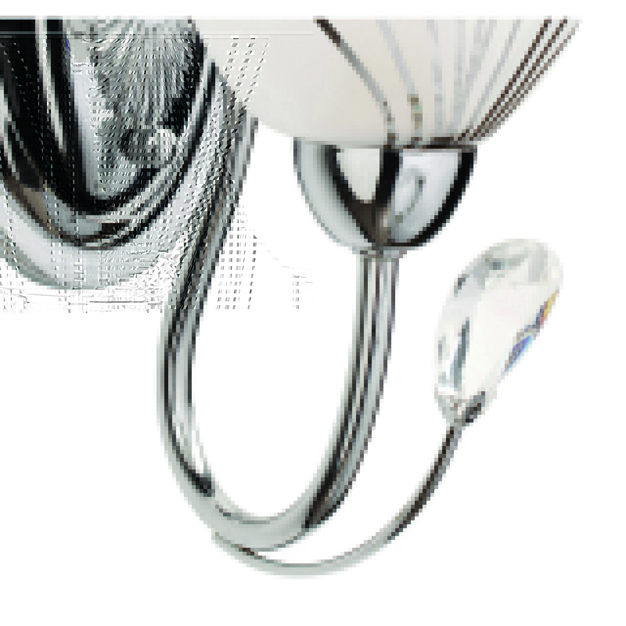 Металлическое основание цвета хрома, плафон из матового стекла с гальванизированным рисунком, декоративный элемент из прозрачного хрустального стекла.Технология производства