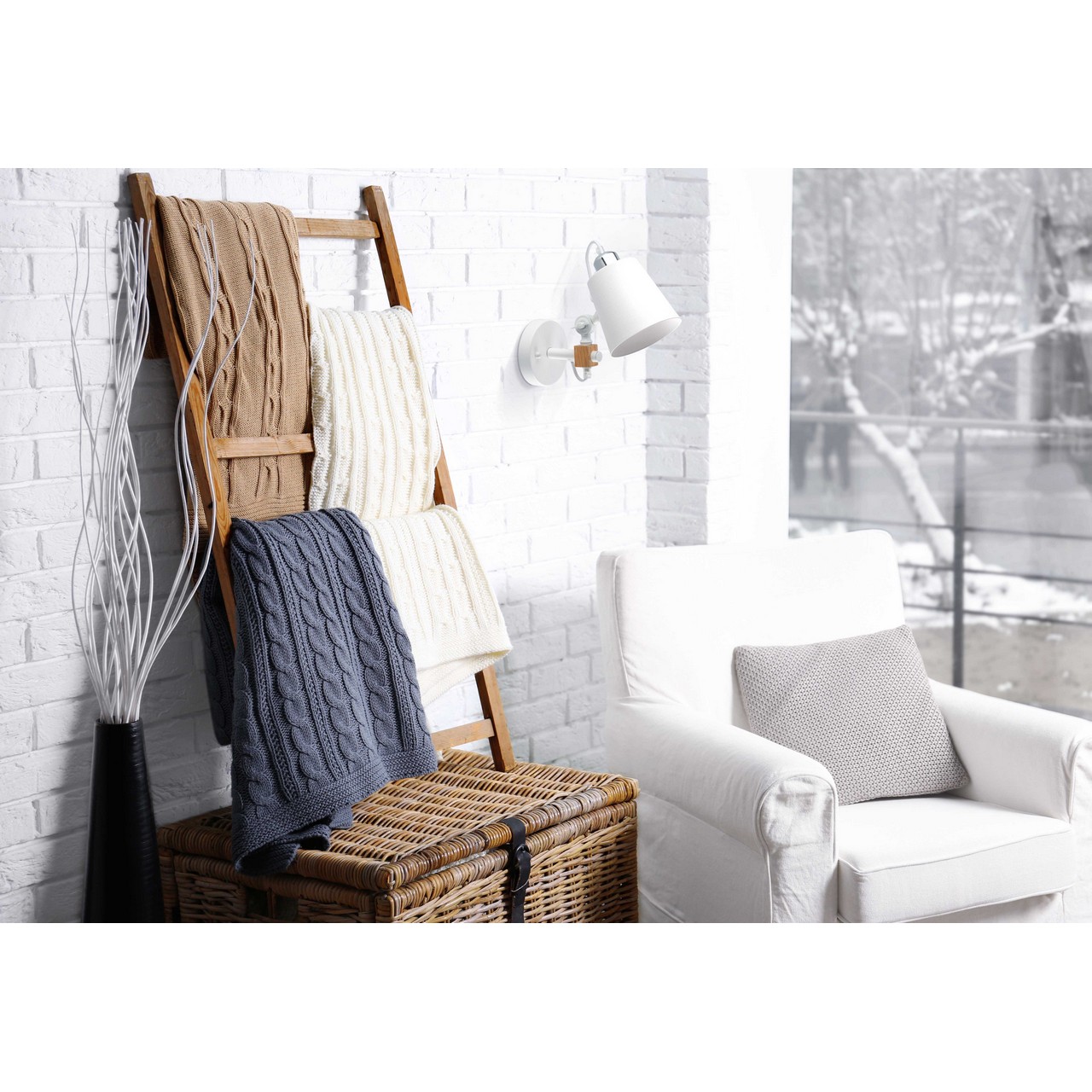 Основание бра светильника выполнено из металла и окрашено в белый цвет. Основание, плафон: обработка на токарном станке. Декоративный элемент на рожке: дерево гевея. Декор: держатель плафона гальванизирован в цвет хрома. Плафон снабжен поворотным механизмом.Тип помещения