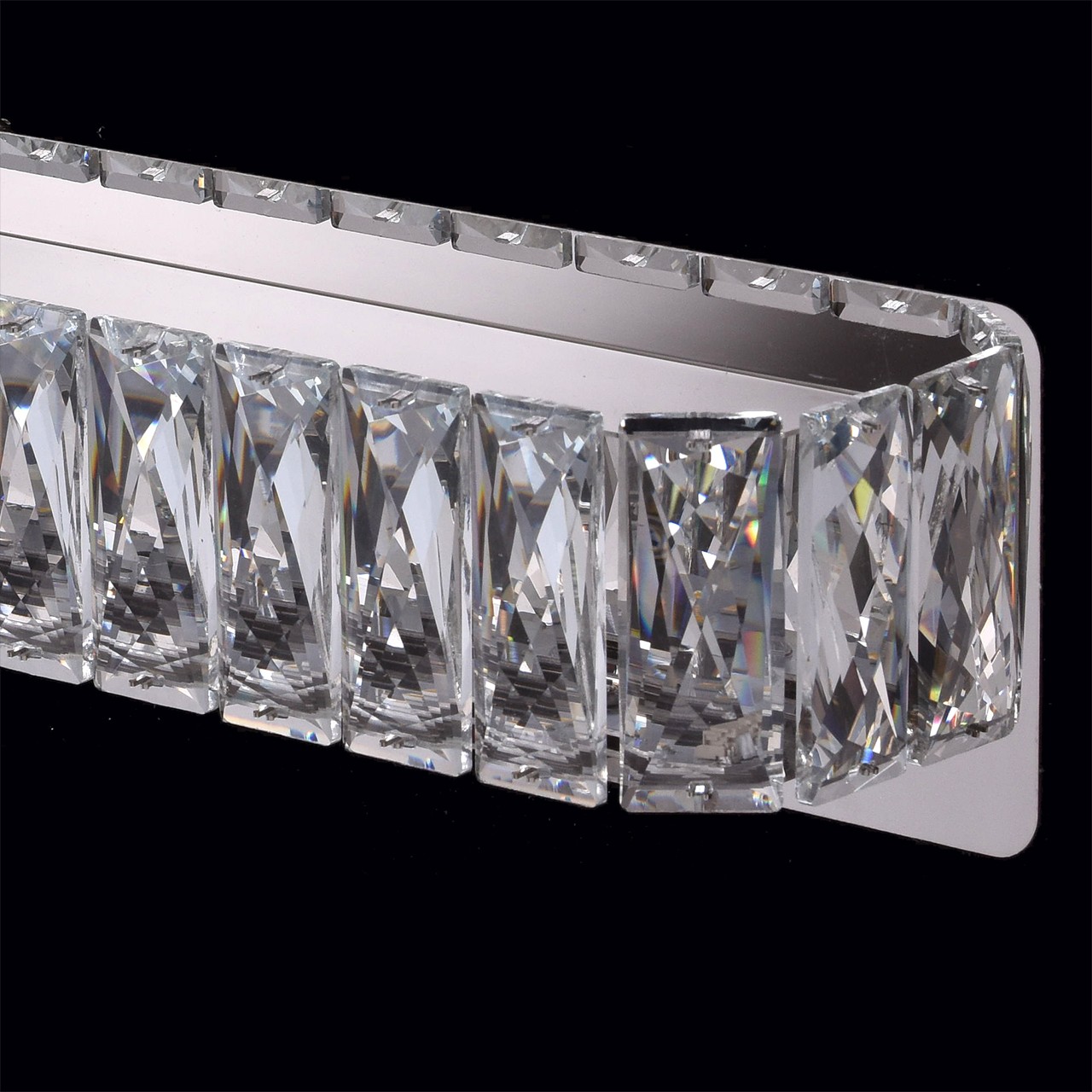 Основание светильника выполнено из нержавеющей стали. С трех сторон корпус светильника декорирован хрусталем квадратной и прямоугольной формы с множеством центров схождения граней.Тип помещения