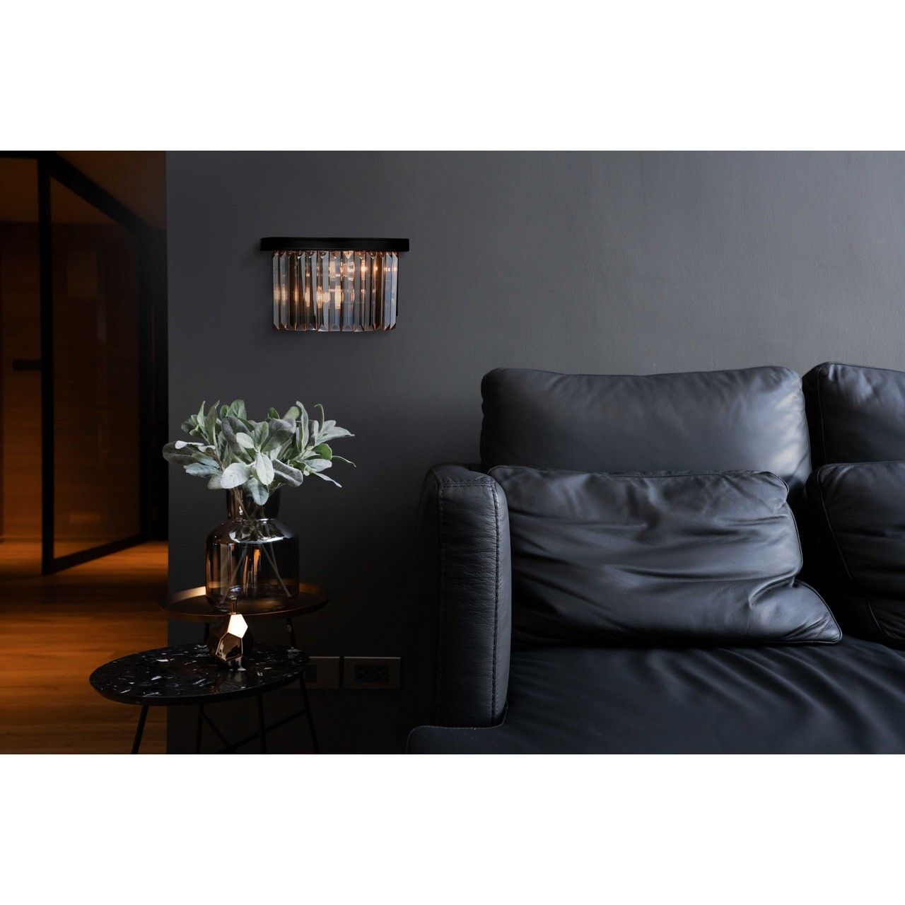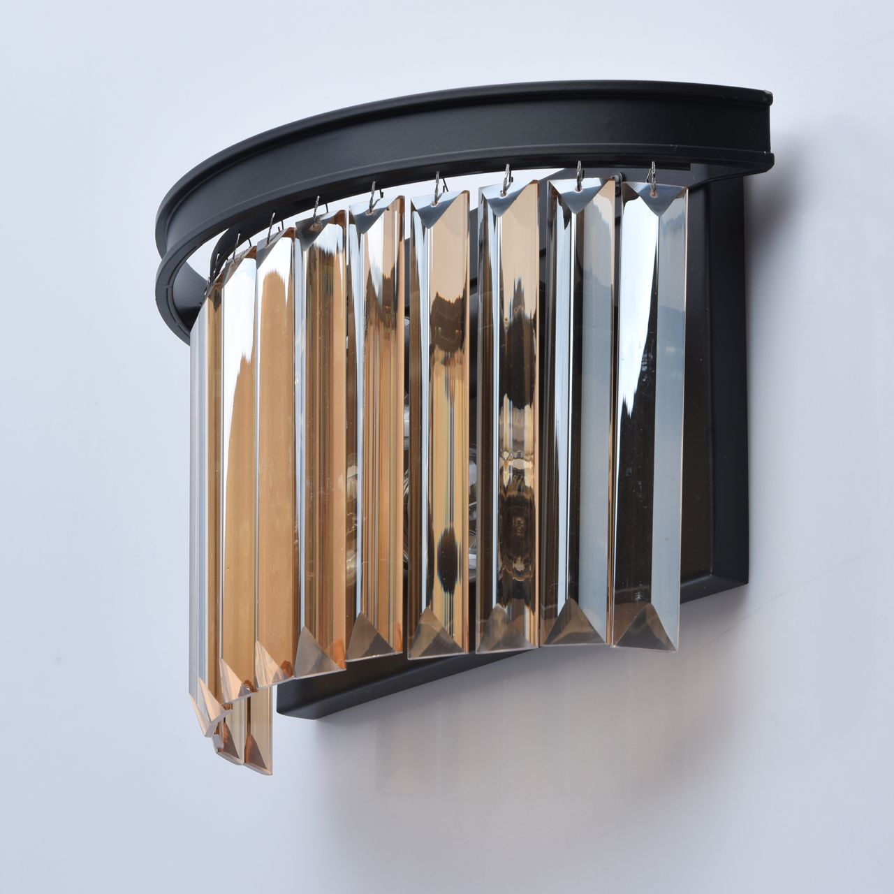 Основание бра выполнено из металла и окрашено в черный матовый цвет. Светильник декорирован хрусталем прямоугольной формы, гальванизированным в цвет шампань.Тип помещения
