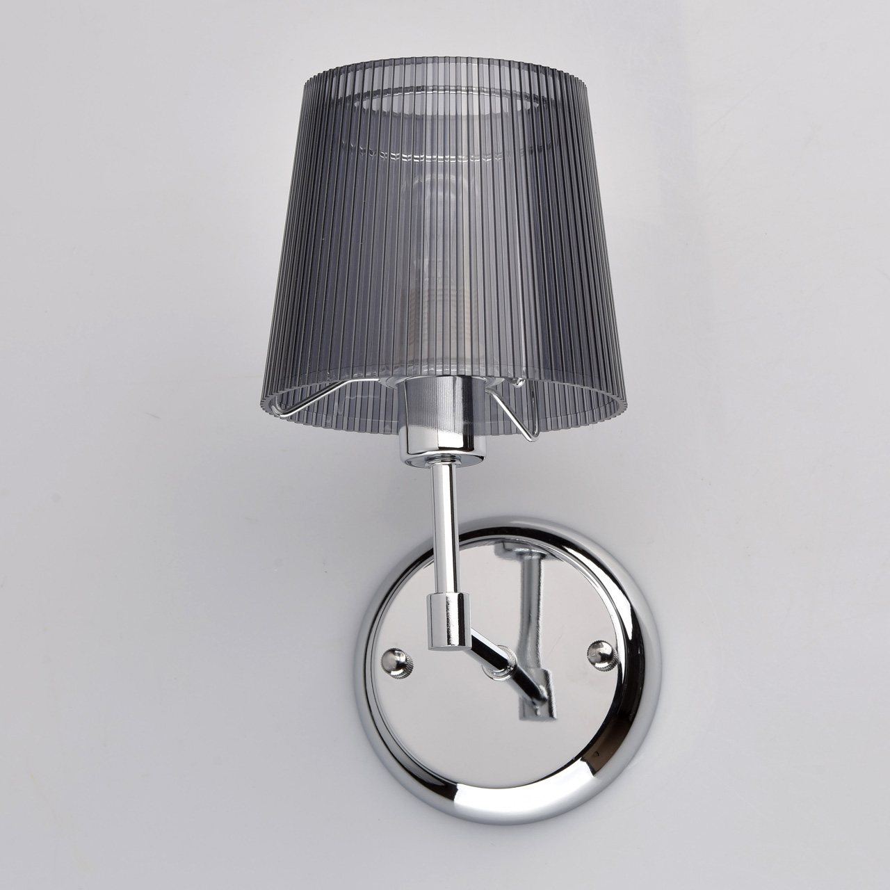 Основание: металл, гальванизировано в цвет хрома. Абажур: акриловый абажур черного цвета отлит в сложную гофрированную форму.Тип помещения