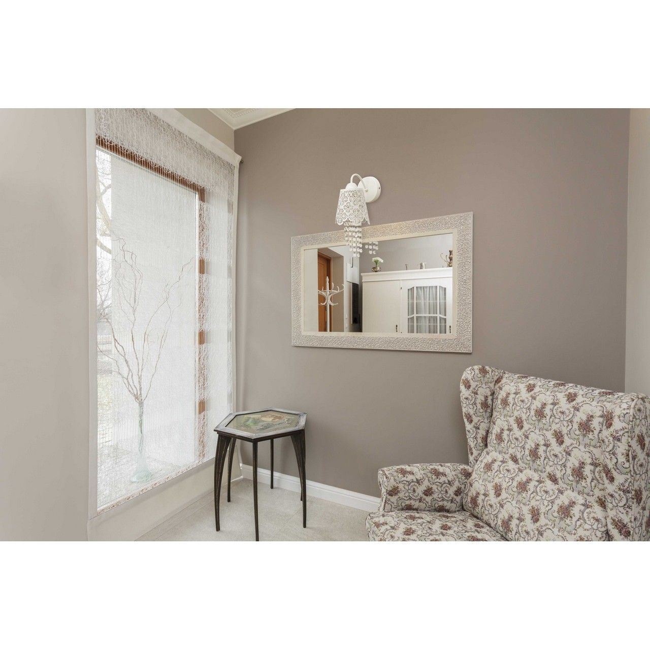 Основание и абажур изготовлены из крашеного металла белого цвета, декоративные элементы из прозрачного хрусталяТехнология производства