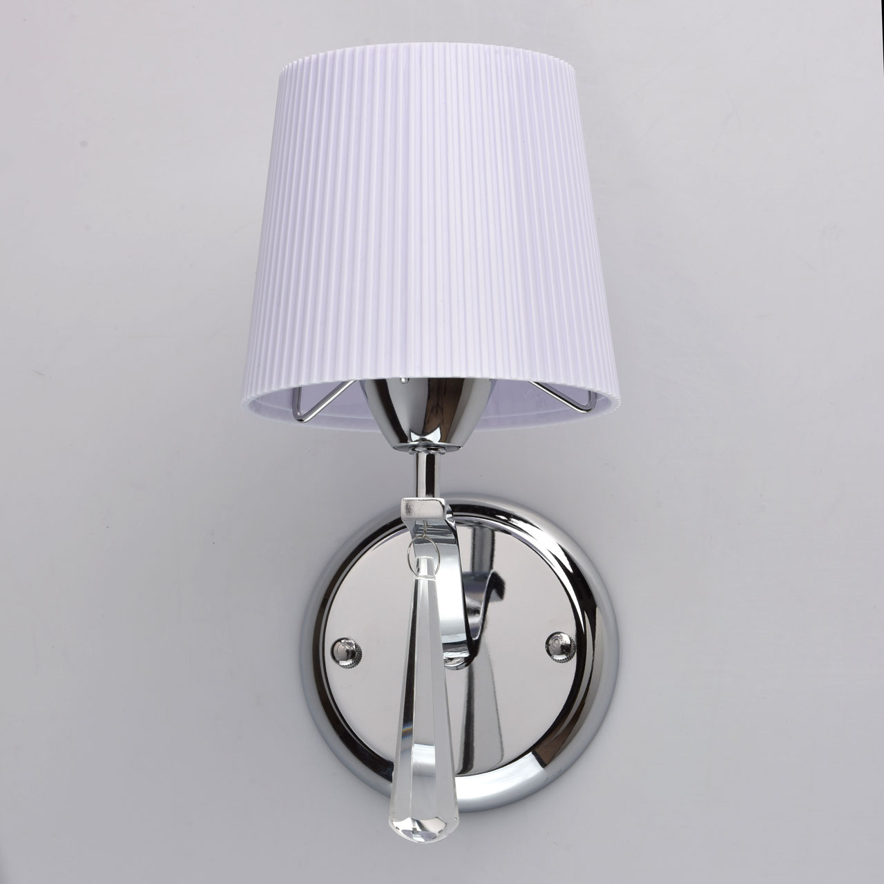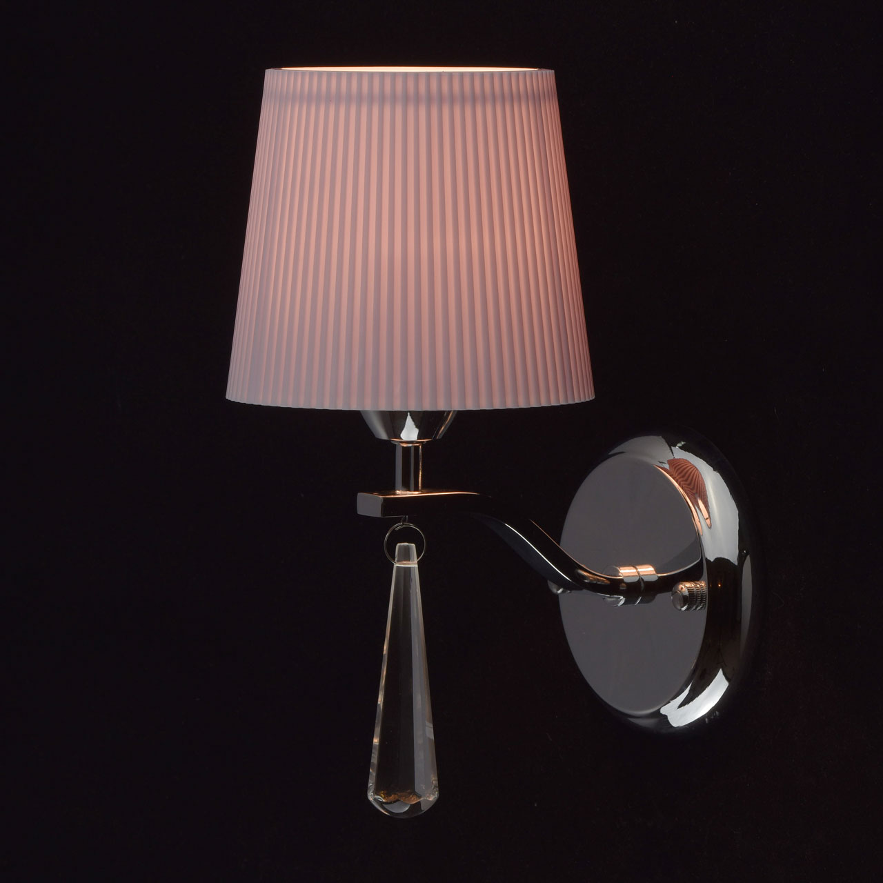 Основание бра: металл, гальванизировано в цвет хрома. Акриловый абажур сиреневого цвета отлит в сложную гофрированную форму. Декор: подвеска выполнена из прозрачного хрусталя.Тип помещения