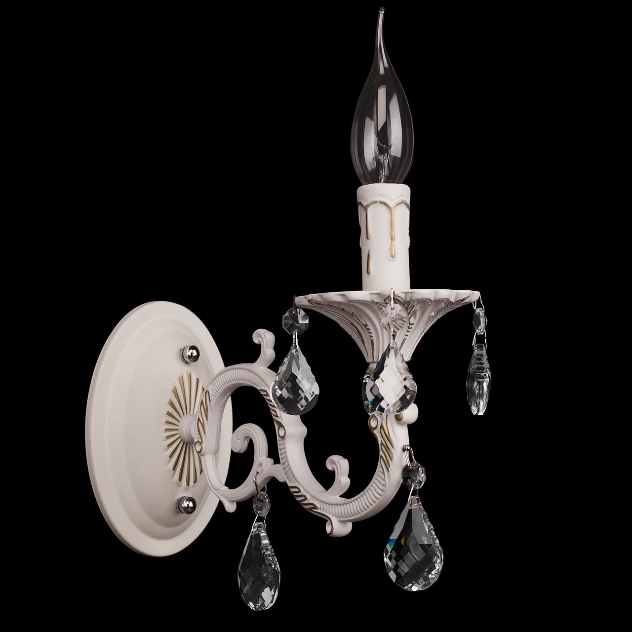 Арматура бра выполнена из комбинации сплавов металлов и обработана по технологии ручного окрашивания: основной защитный слой белого матового цвета, затем вручную окрашены выступающие части орнамента. Основание светильника выполнено из сплава железа по технологии прессования. Рожок и декоративная розетка выполнены из сплава алюминия с цинком по технологии художественного литья в кокиль под давлением. Светильник декорирован подвесками из хрусталя категории "a-grade" сложной огранкиТип помещения
