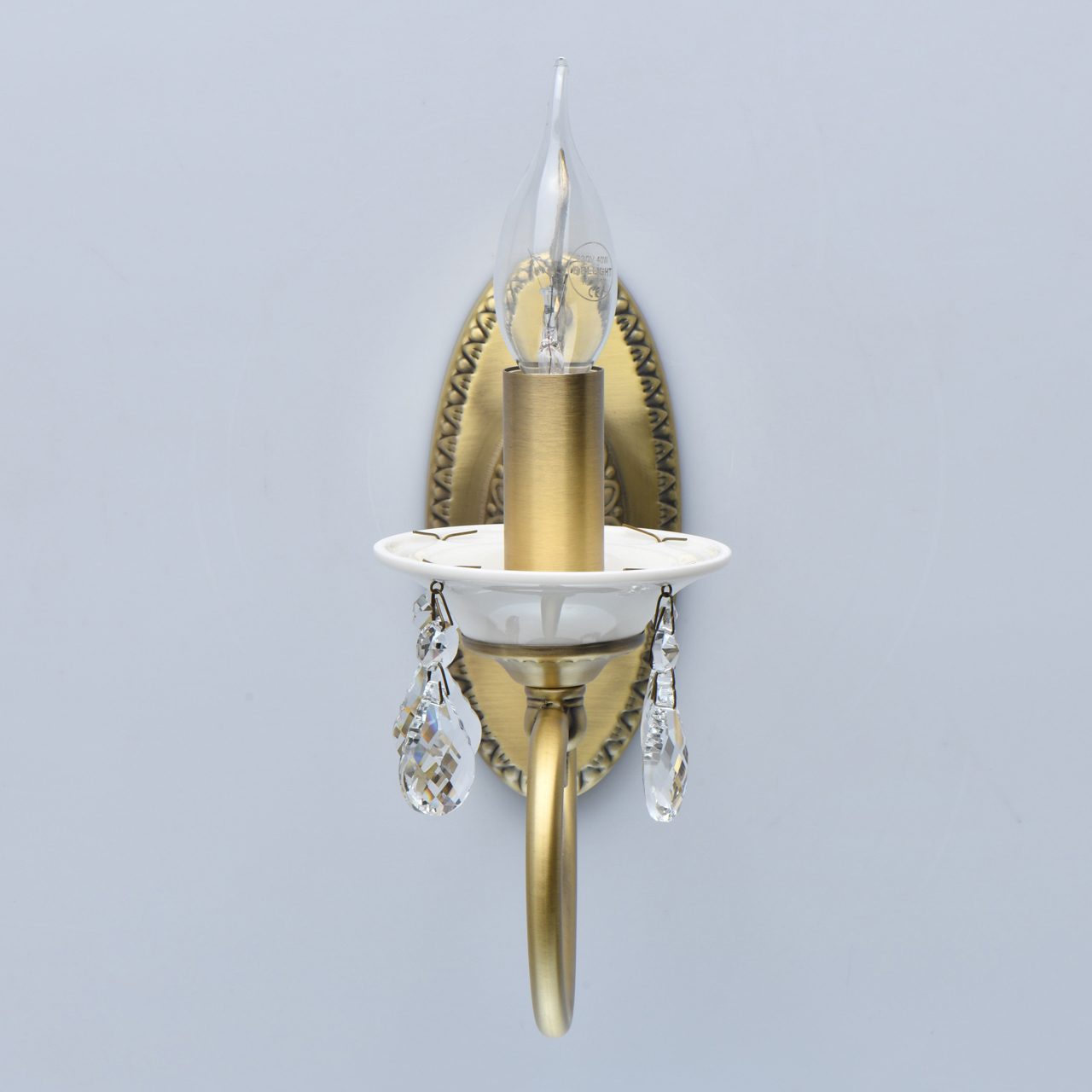 Основание/металл/сплав алюминия/бронзовый Декор/фарфор/белый Декор/прозрачный хрустальТехнология производства