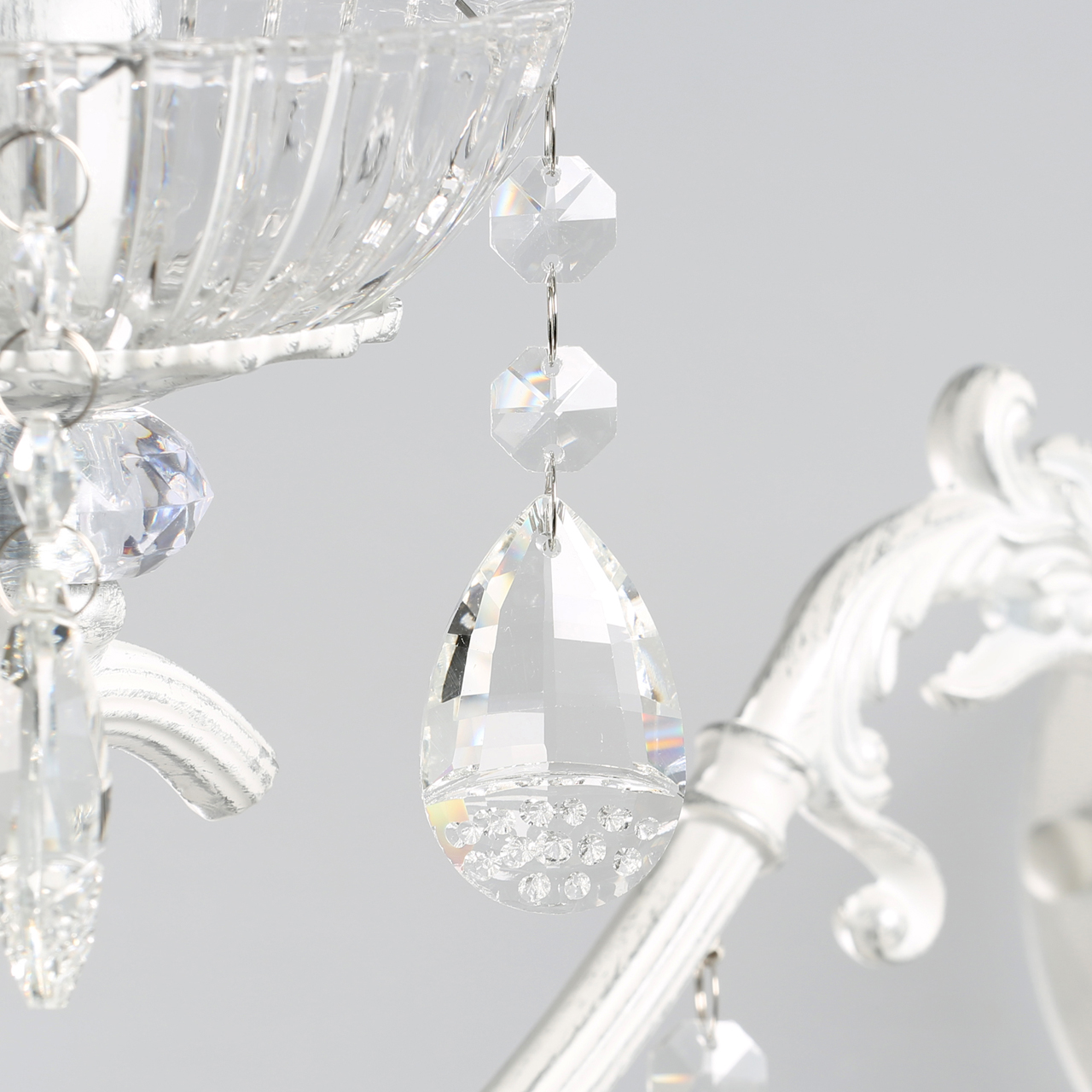 Основание/металл/белый, серебряный Декор/хрусталь/акрилТехнология производства