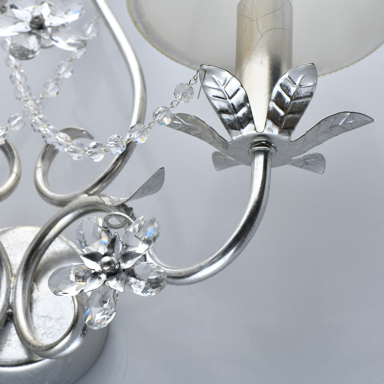 Основание/металл/сусальное серебро и сусальное золото Абажуры/текстиль/молочный Декор/прозрачный хрустальТехнология производства