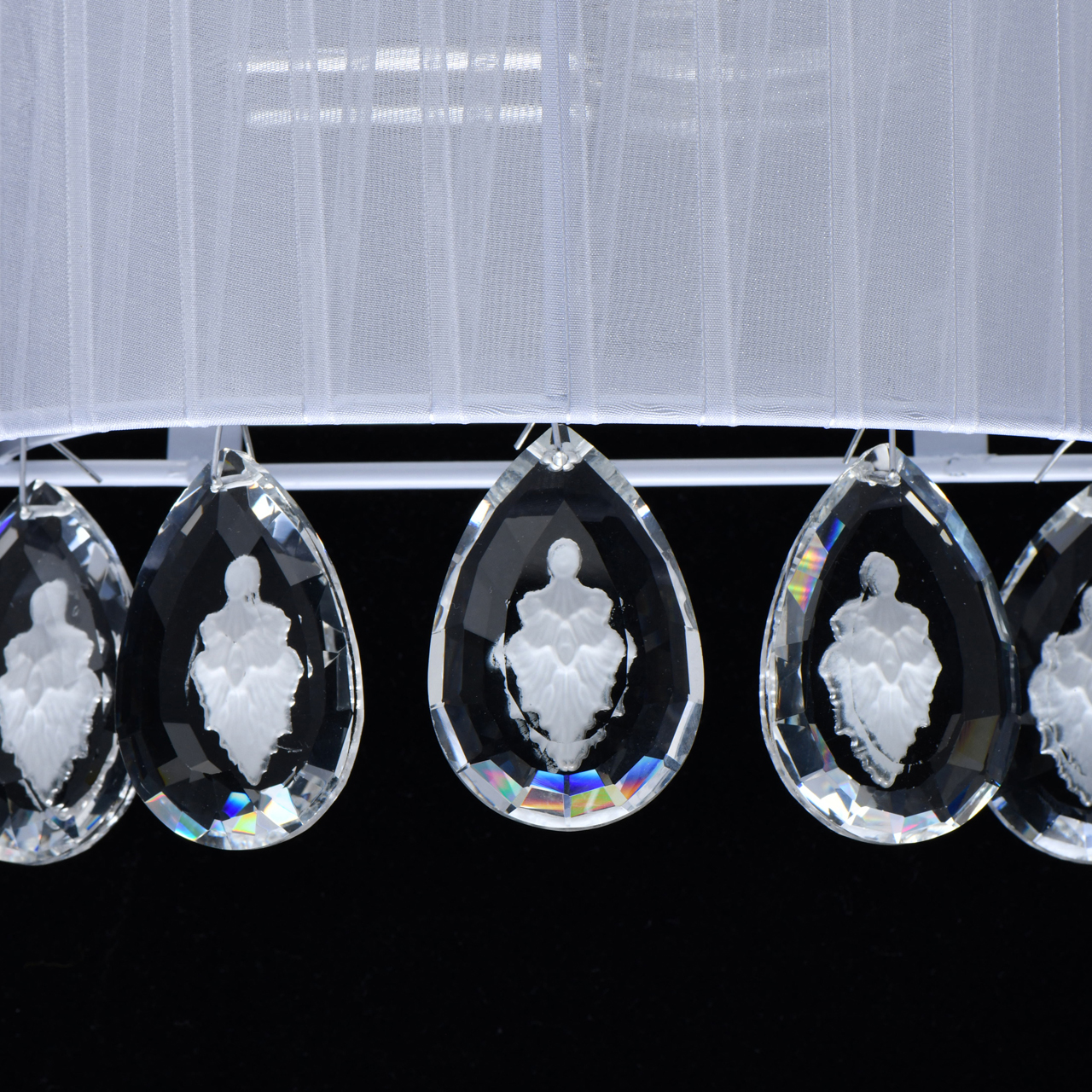 Основание/нержавеющая сталь Плафон/текстиль/белый Декор/хрусталь с резным белым орнаментомТехнология производства