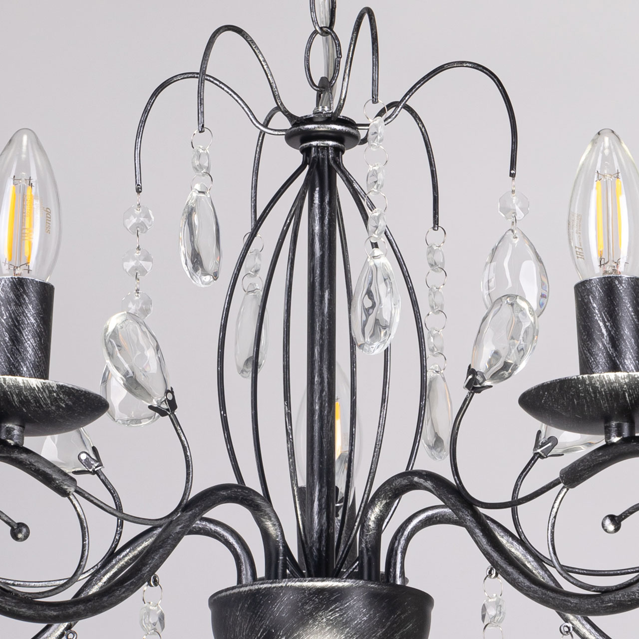 Классический дизайн подвесной люстры остается актуальным. Черный цвет основания с серебряной патиной делает подвесную люстру интерьерообразующей. Открытые источники света хорошо освещают все пространство комнаты. Заменяемые лампы удобны в эксплуатации.Технология производства