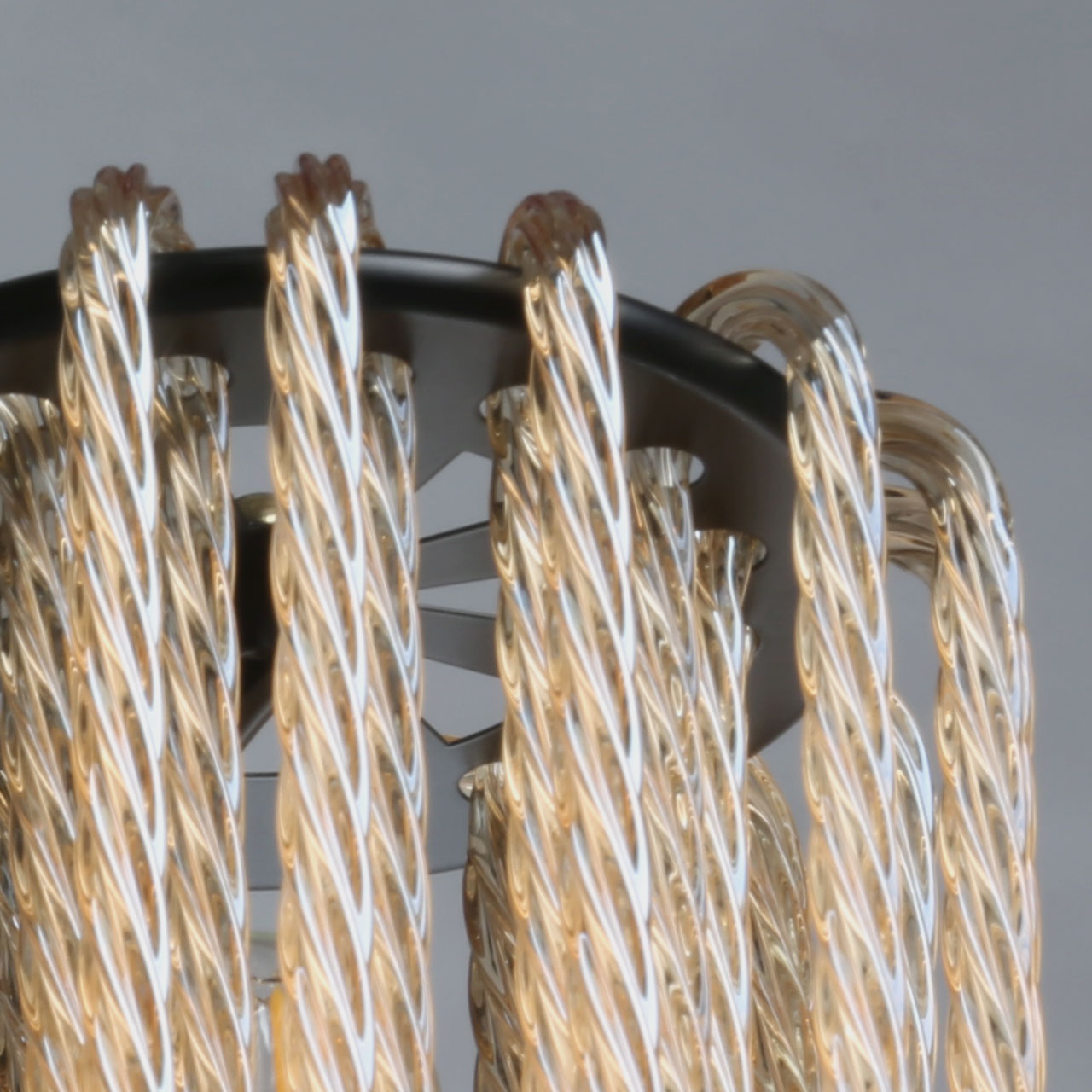 Металлическое основание окрашено в черный цвет. Отдельные элементы светильника гальванизированы в цвет бронзы. Светильник декорирован стеклянными извитыми элементами, гальванизированными в цвет топаз.Характеристики