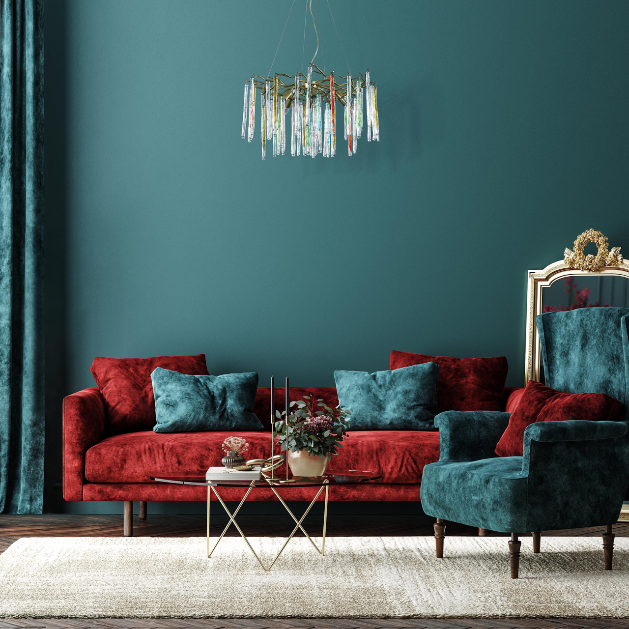 Металлическое основание светильника окрашено в цвет перламутрового золота. Люстра на тросах декорирована стеклянными элементами вытянутой формы, прозрачными и окрашенными в массе в красный, зеленый, голубой и желтый цвета.Характеристики