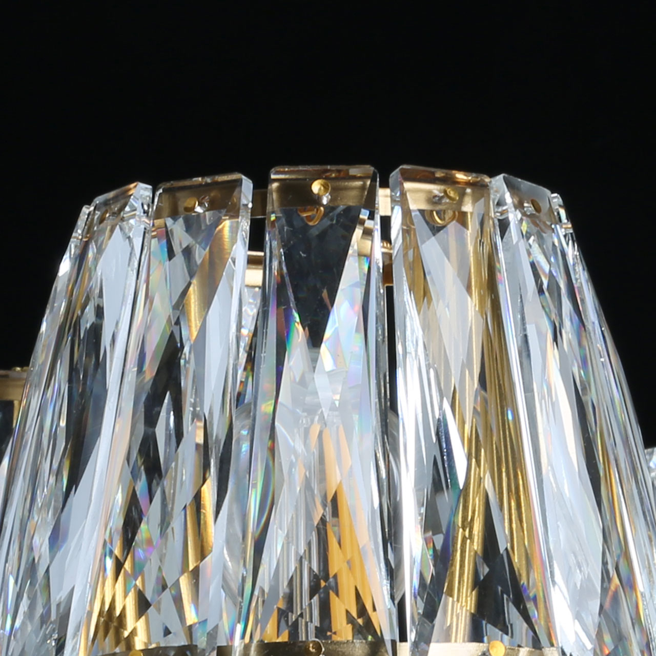 Металлическое основание светильника гальванизировано в цвет бронзы. Рожки декорированы изящными элементами художественного литья из сплава алюминия с цинком. Светильник декорирован плафонами из прозрачного хрусталя прямоугольной формы со множественными центрами схождения граней.Характеристики