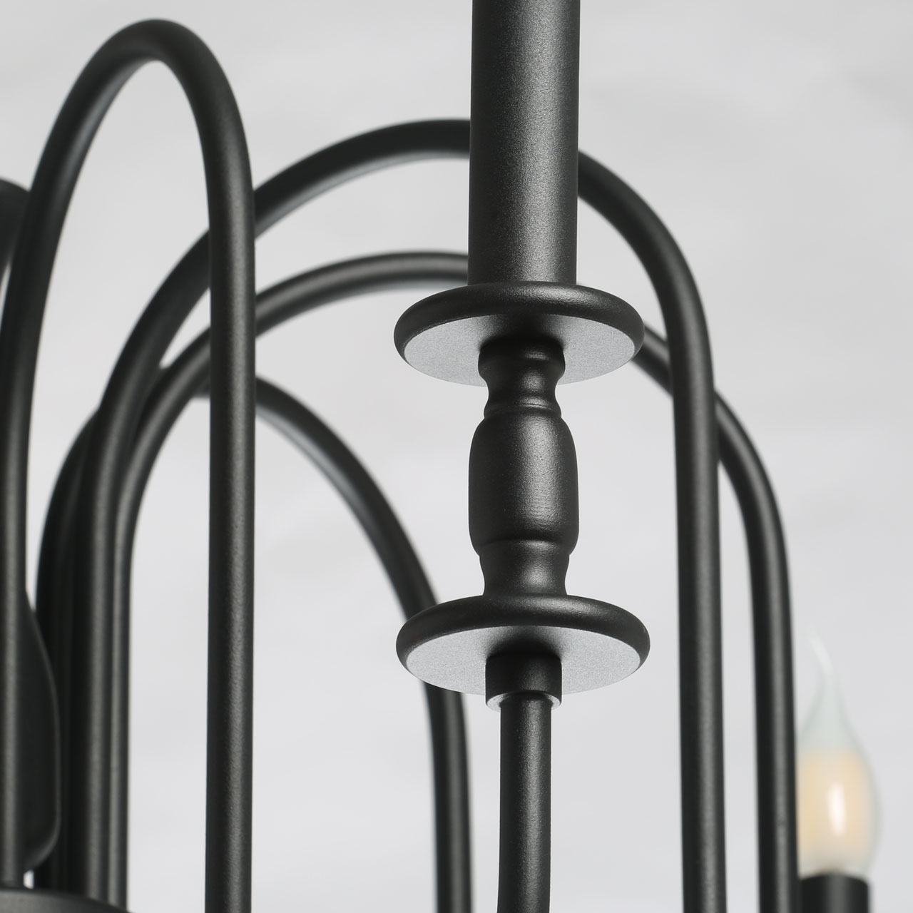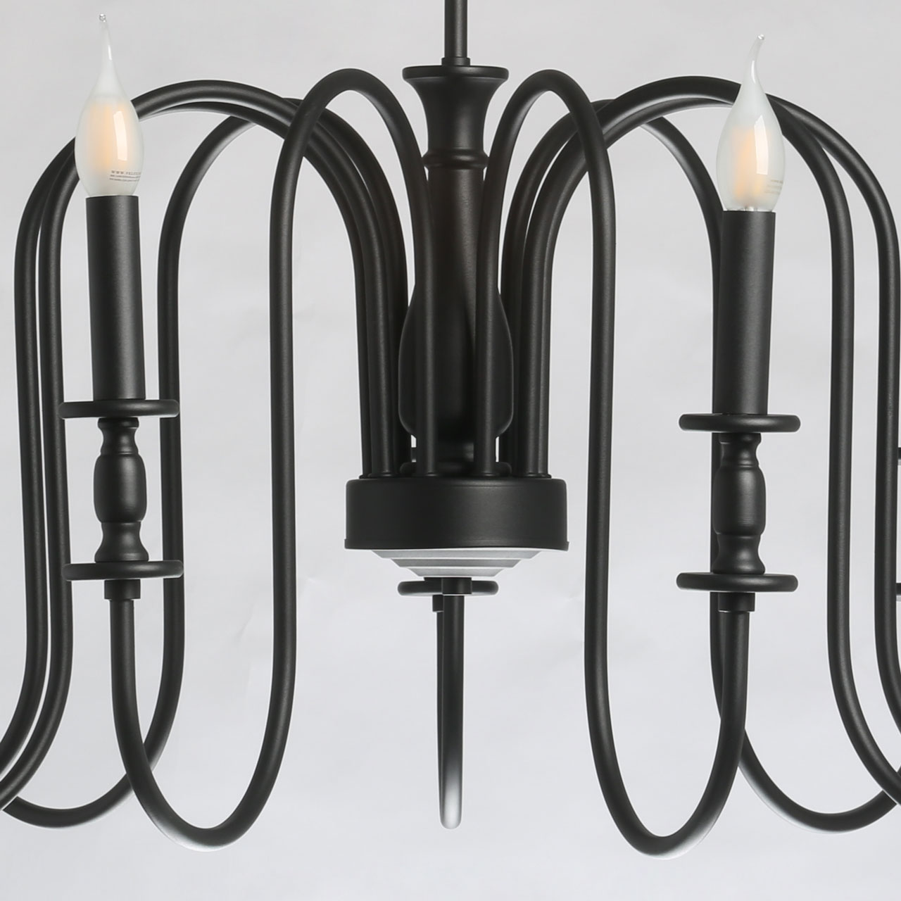Оригинальный дизайн потолочной люстры привлекает к себе внимание. Черный цвет основания эффектно выделяет подвесную люстру на потолке. Минимализм люстры придает современности. Открытые источники света хорошо освещают пространство комнаты. Заменяемые лампы удобны в эксплуатации.Технология производства