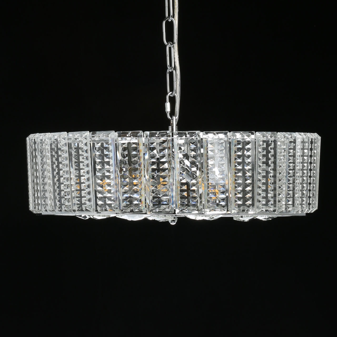 Подвесная люстра выполнена в стиле эклектика, что позволяет ее размещать как в современном, так и в классическом интерьере. Фактурный декор плафона в сочетании с хрусталем создают красивую игру света. Регулируемый подвес позволяет устанавливать комфортную высоту. Заменяемые источники света удобны в эксплуатации.Технология производства