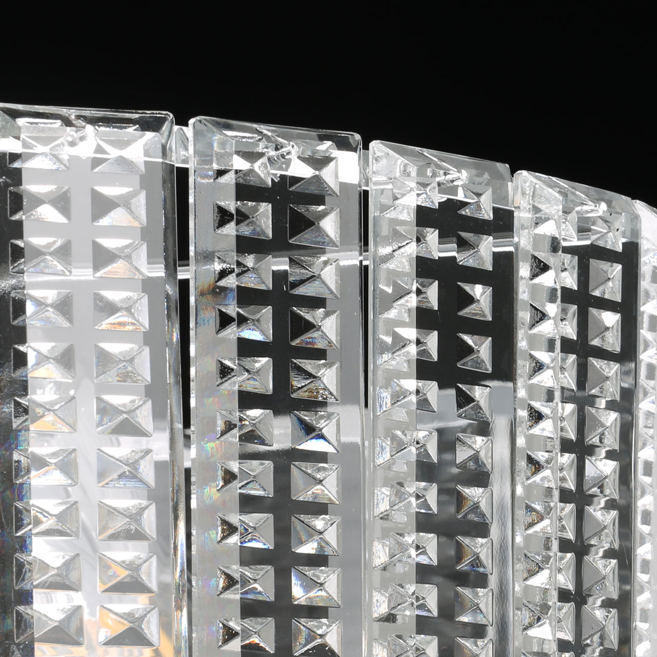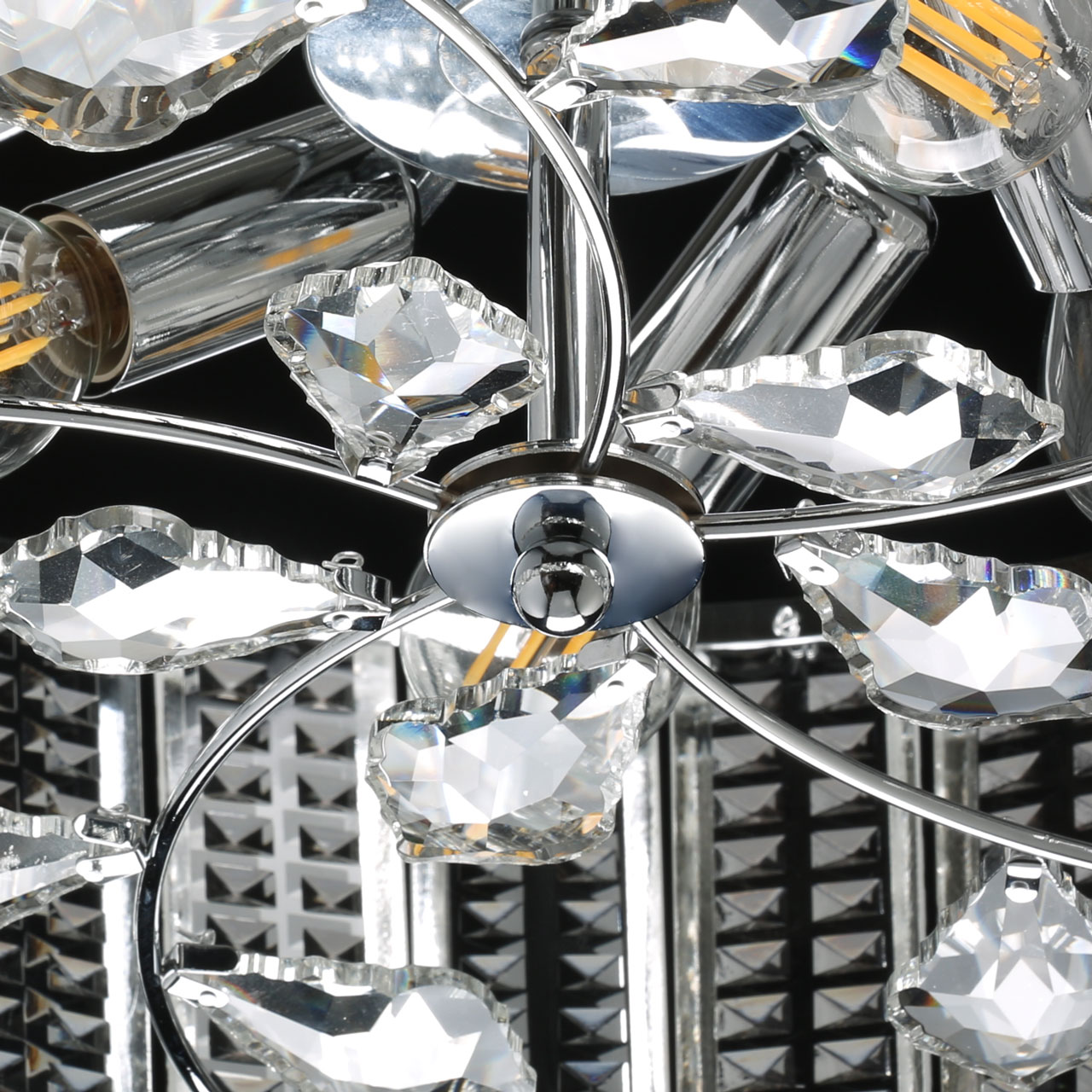 Металлическое основание светильника гальванизировано в цвет хрома. Светильник декорирован прозрачным фактурным стеклом и хрустальными элементами в форме дубового листа.Характеристики