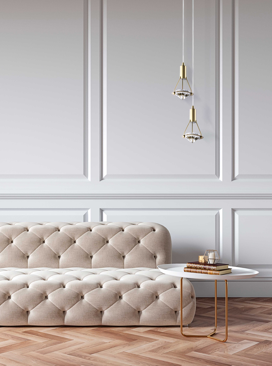 Актуальный цвет золота в сочетании с хрусталем придает одиночному подвесу парадности. Универсально подходит в классический и современный интерьер. Благодаря хрустальному элементу высокого качества создается красивая игра света. Источник света, направленный на хрусталь высокого качества в виде бриллианта создает красивую игру света.Технология производства