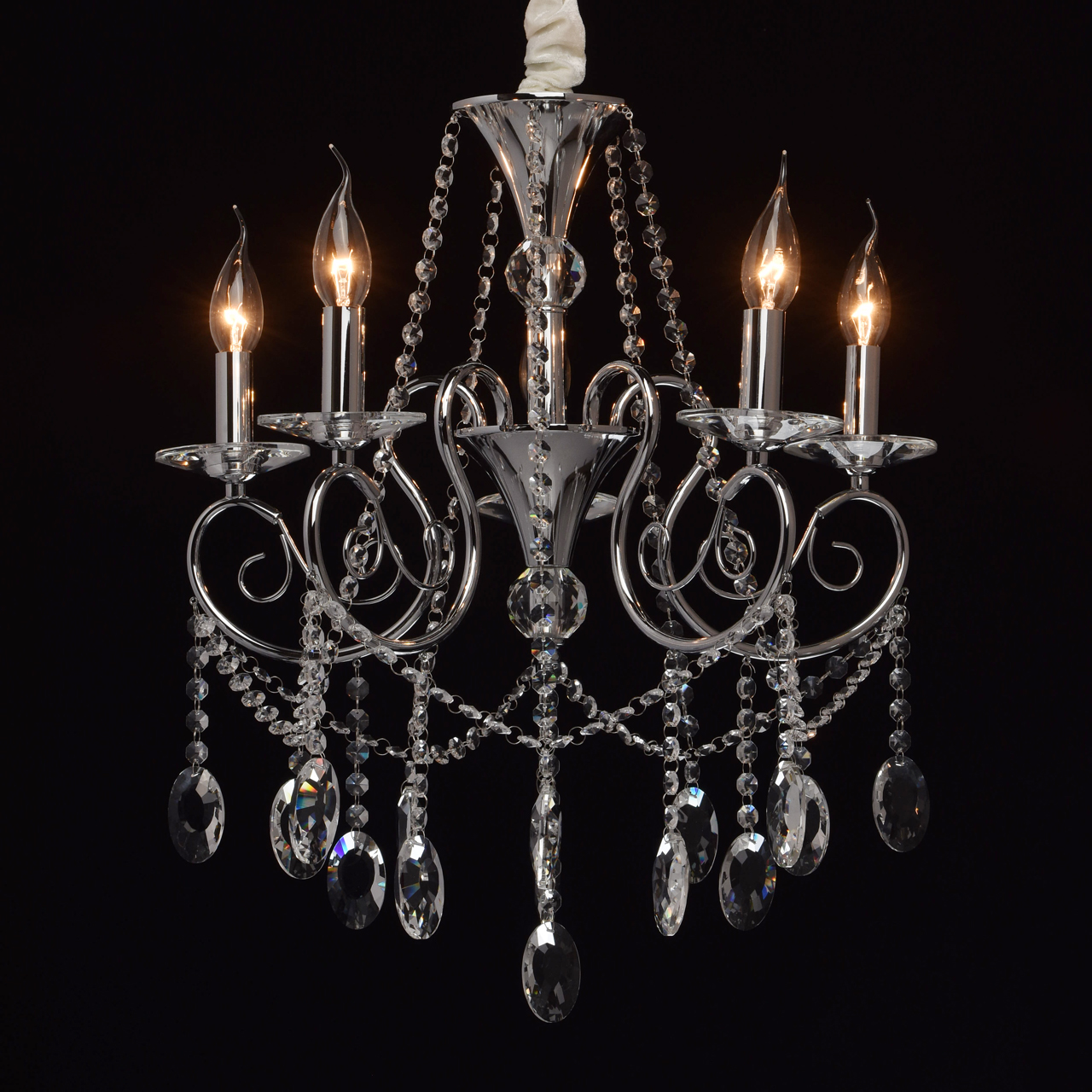 Дизайн в классическом стиле Традиционная форма свечи обеспечивает высокие параметры освещенности Прозрачные хрустальные подвески создают волшебную игру света Люстра отличается особым изяществом благодаря тонко изогнутым рожкам цвета хрома. Наличие нескольких светильников в семье дает возможность комплексного освещения помещения Премиальный светильник по демократичной ценеСтилевые решения интерьера