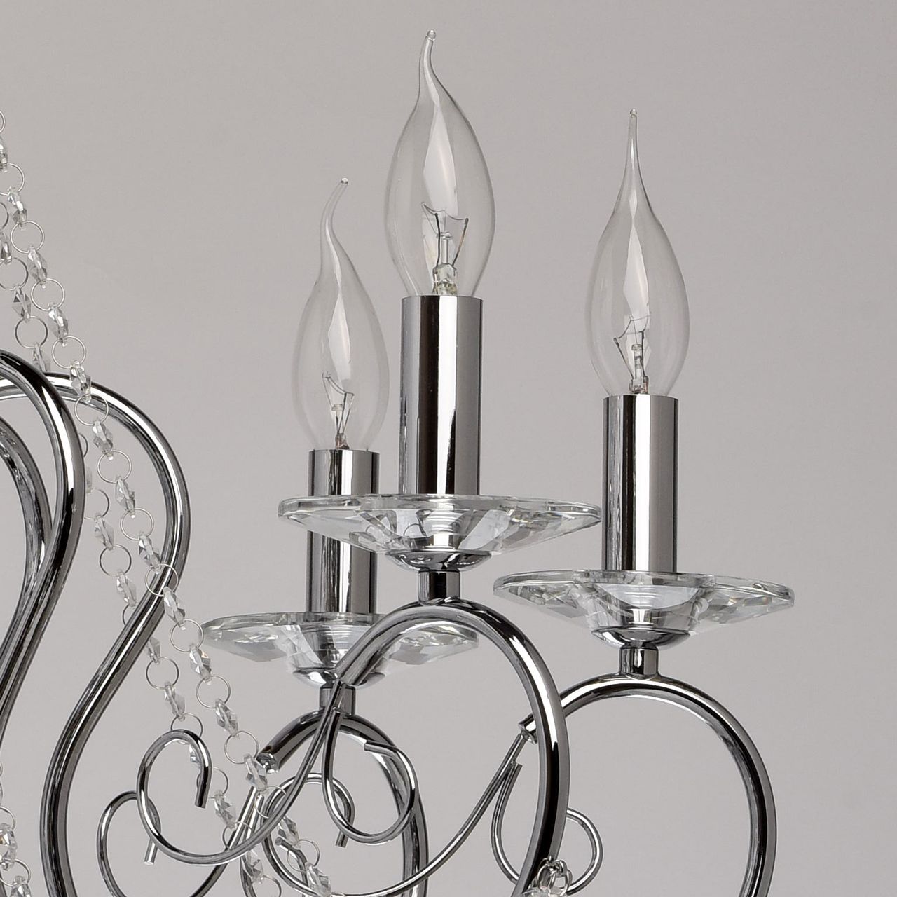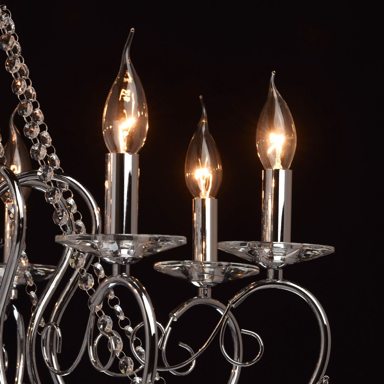 Дизайн в классическом стиле Традиционная форма свечи обеспечивает высокие параметры освещенности Прозрачные хрустальные подвески создают волшебную игру света Люстра отличается особым изяществом благодаря тонко изогнутым рожкам цвета хрома. Наличие нескольких светильников в семье дает возможность комплексного освещения помещения Премиальный светильник по демократичной ценеСтилевые решения интерьера