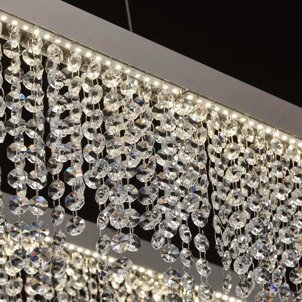 Оригинальный современный гламурный дизайн. Хрустальные подвески создают великолепную игру света Возможность регулировать подвесы по высоте Идеальное решение для зонального мягкого освещения В светильнике используются долговечные в использовании экономичные светодиоды.Стилевые решения интерьера