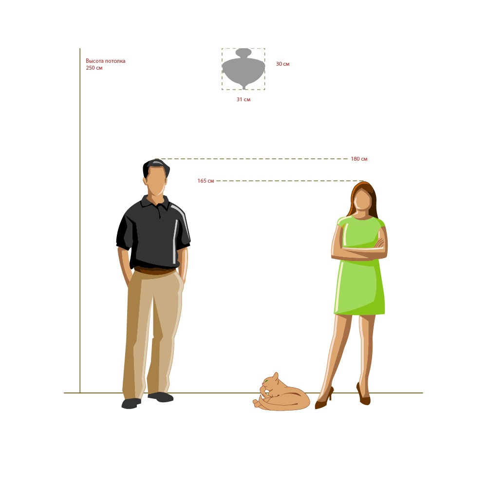 Основание выполнено из сплава железа по технологии токарной обработки. Каркас плафона выполнен из сплава железа. Плафон изготовлен из прозрачного стекла, обработанного пескоструйным матированием с рисунком нанесенным по технологии алмазной резьбы, отлит на форму. Центральный плафон декорирован художественным литьем из сплава алюминия.Тип помещения