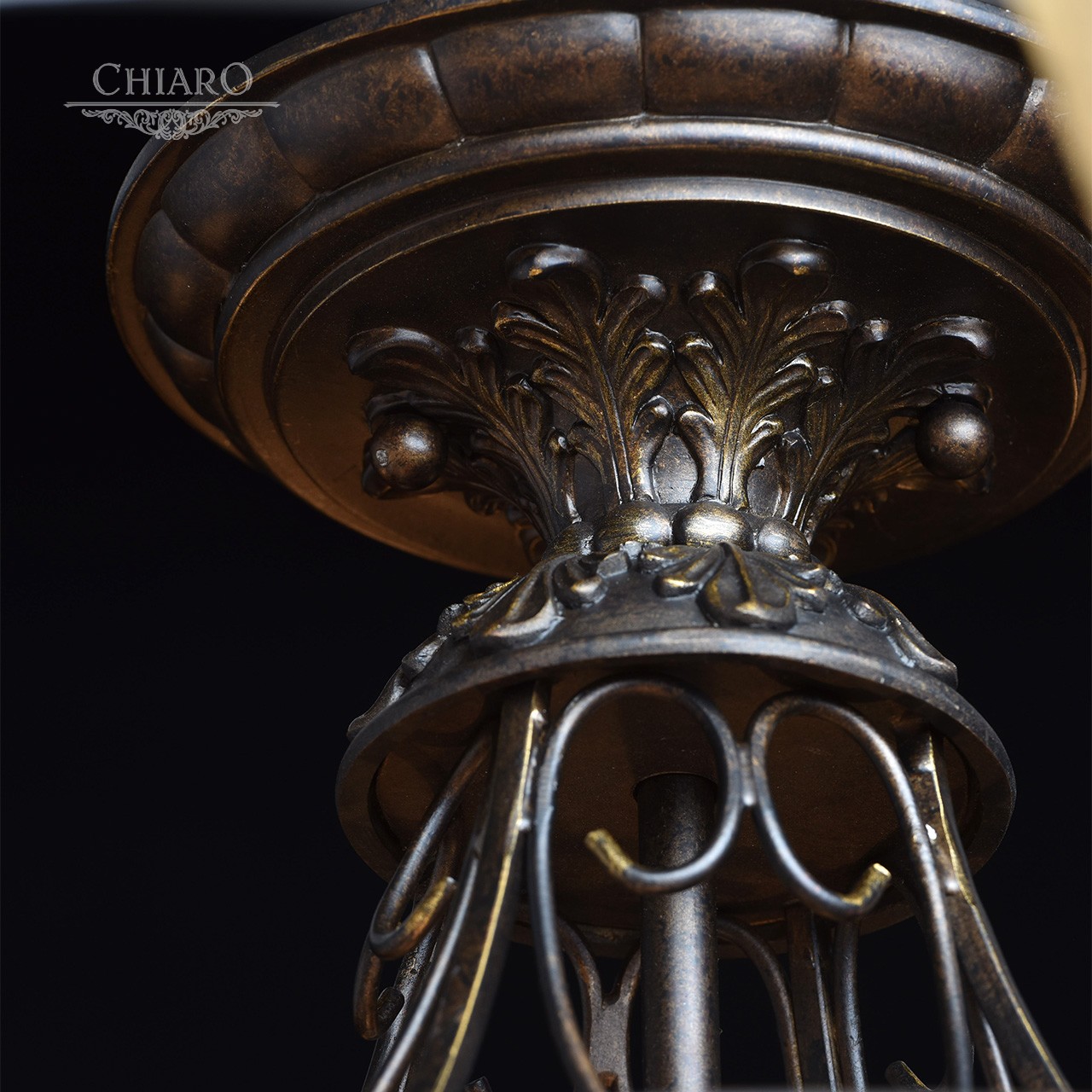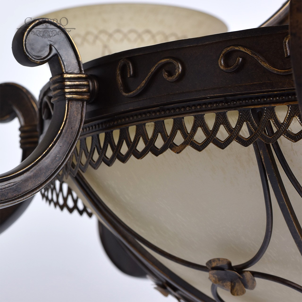 Потолочный светильник Айвенго запоминается необычным декором в виде паутинки из кованого металла поддерживающий объёмные стеклянные плафоны искусно декорированные под старину. Потолочный светильник украсит тематические помещения в стиле Кантри или станет отличным вариантом для зонального освещения.Преимущества модели