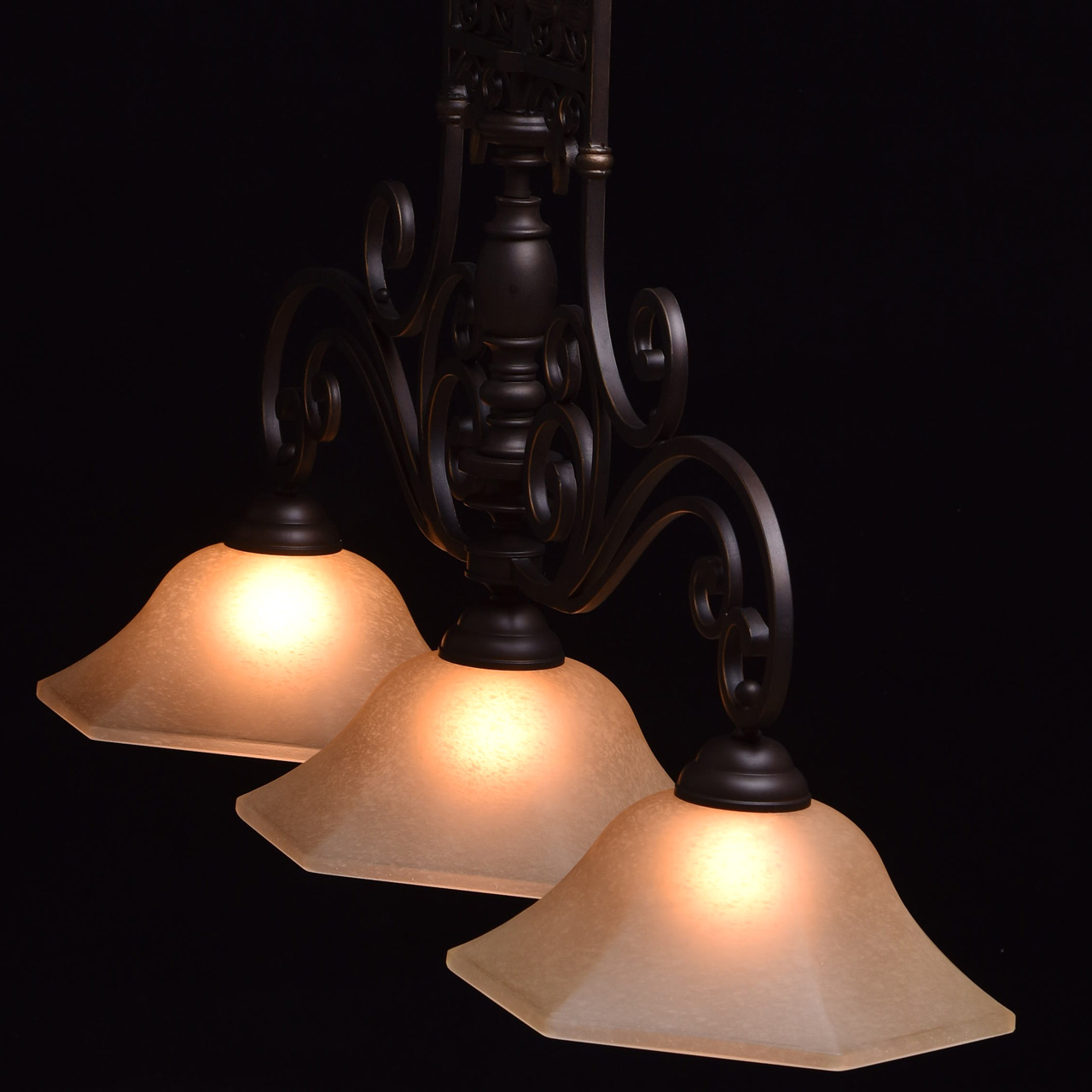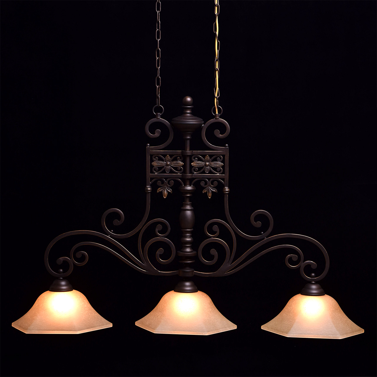 Плавно-изогнутые кованые рожки симметричного каркаса кованого основания светильника Айвенго удерживают в ряд 3 стеклянных плафона, по форме напоминающих раскрывшиеся бутоны соцветий. Матовое фактурное стекло рассеивает свет и создаёт восхитительный эффект мягкого свечения зажжёной люстры. Длинные металлические цепи позволяют расположить светильник Айвенго на разных уровнях по высоте помещения и создают приятную располагающую обстановку в обеденной зоне над большим уютным столом!Преимущества модели