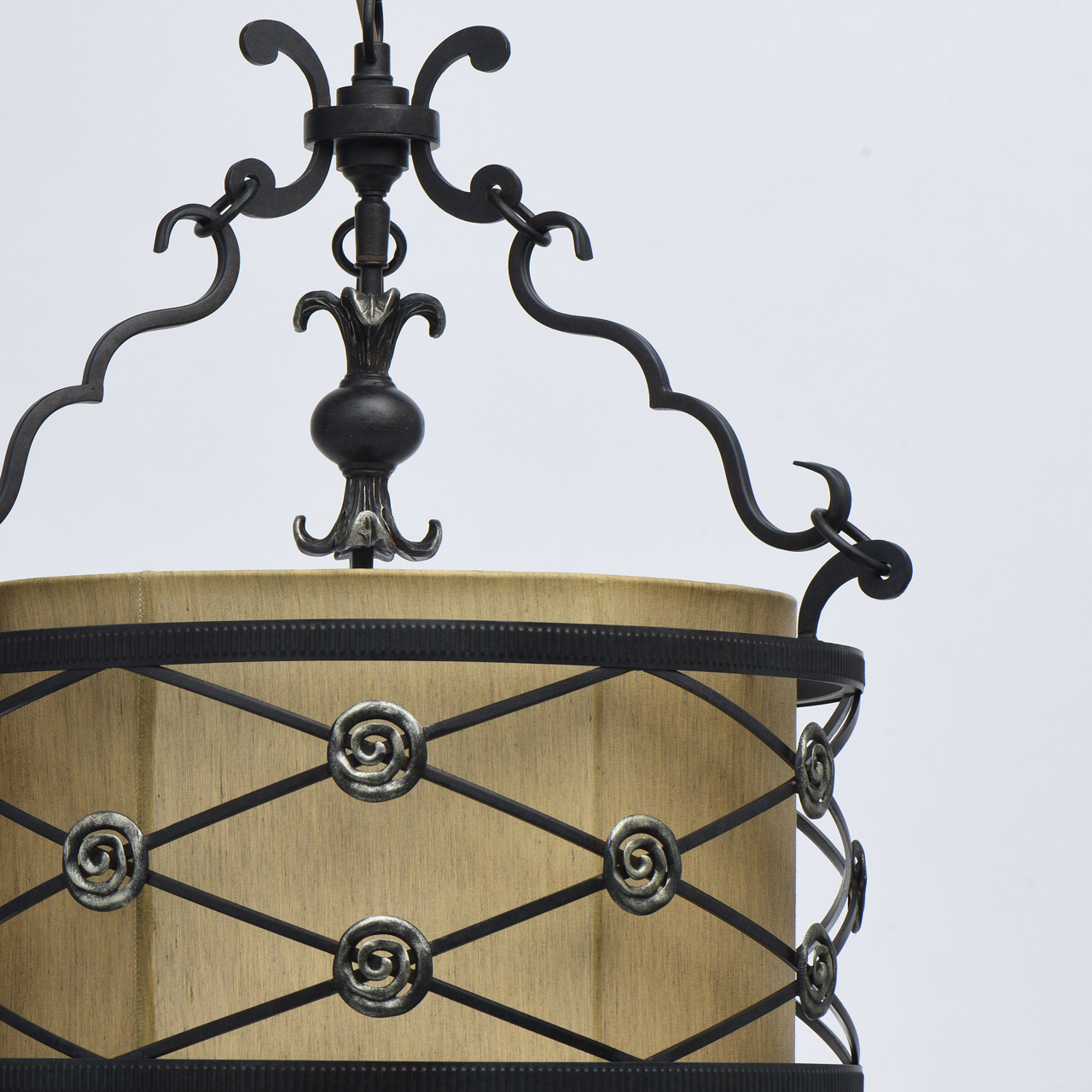 Полная семья из бра и подвесов на 1 и 4 лампы. Актуальный дизайн в сочетании кованого основания ручной работы и текстильного абажура. Тканевый абажур натурального цвета обеспечивает мягкий световой поток. Возможность регулировать высоту светильника за счёт звеньев цепи.Стилевые решения интерьера