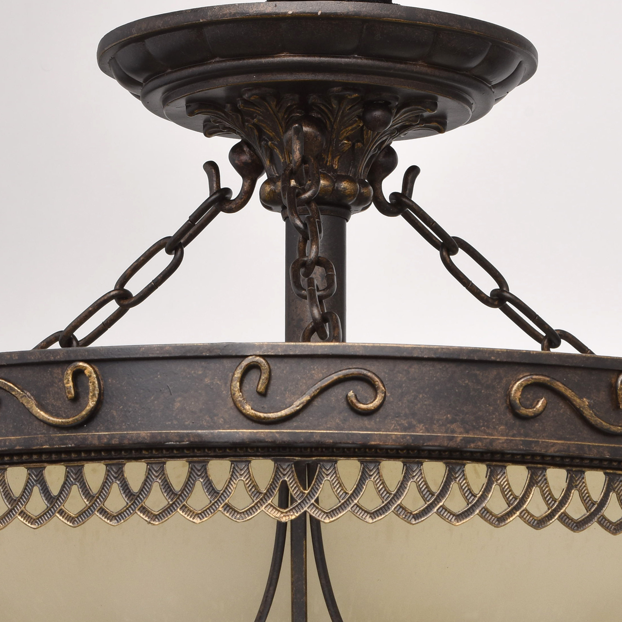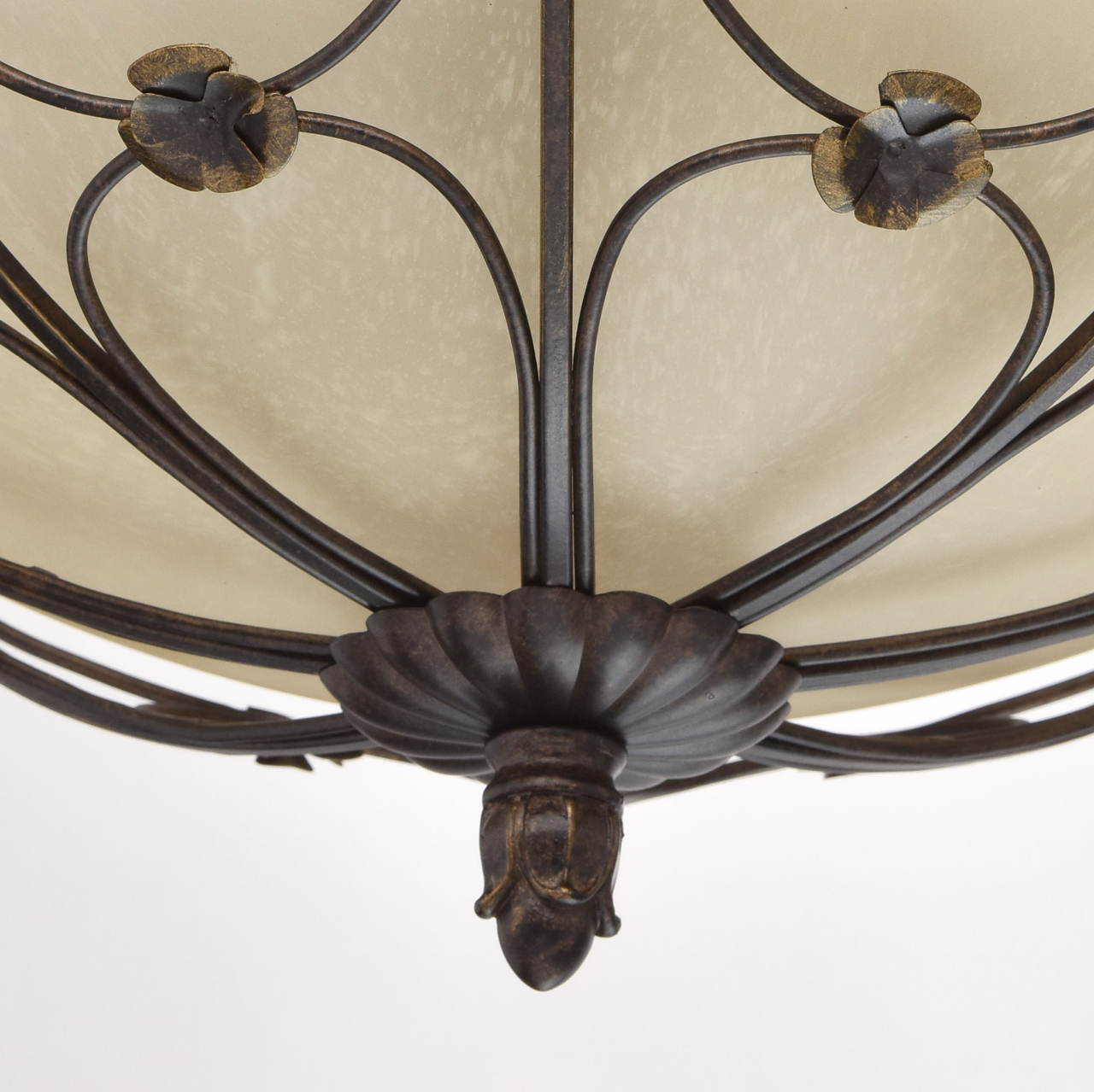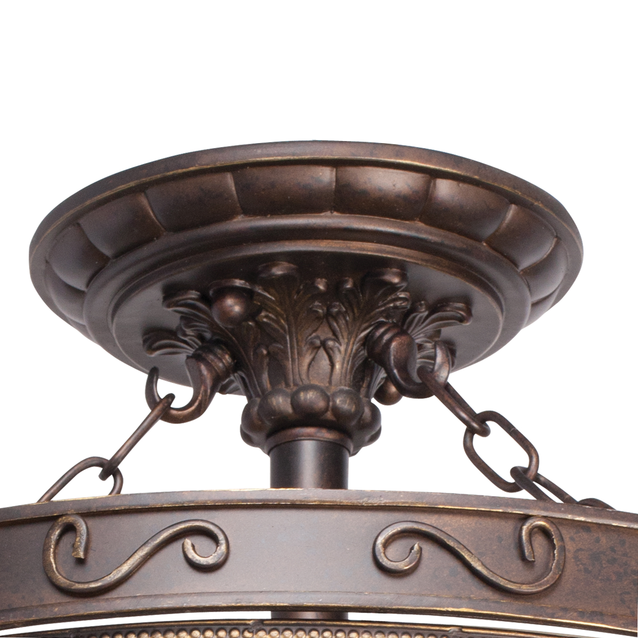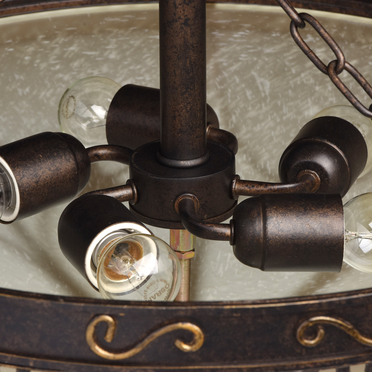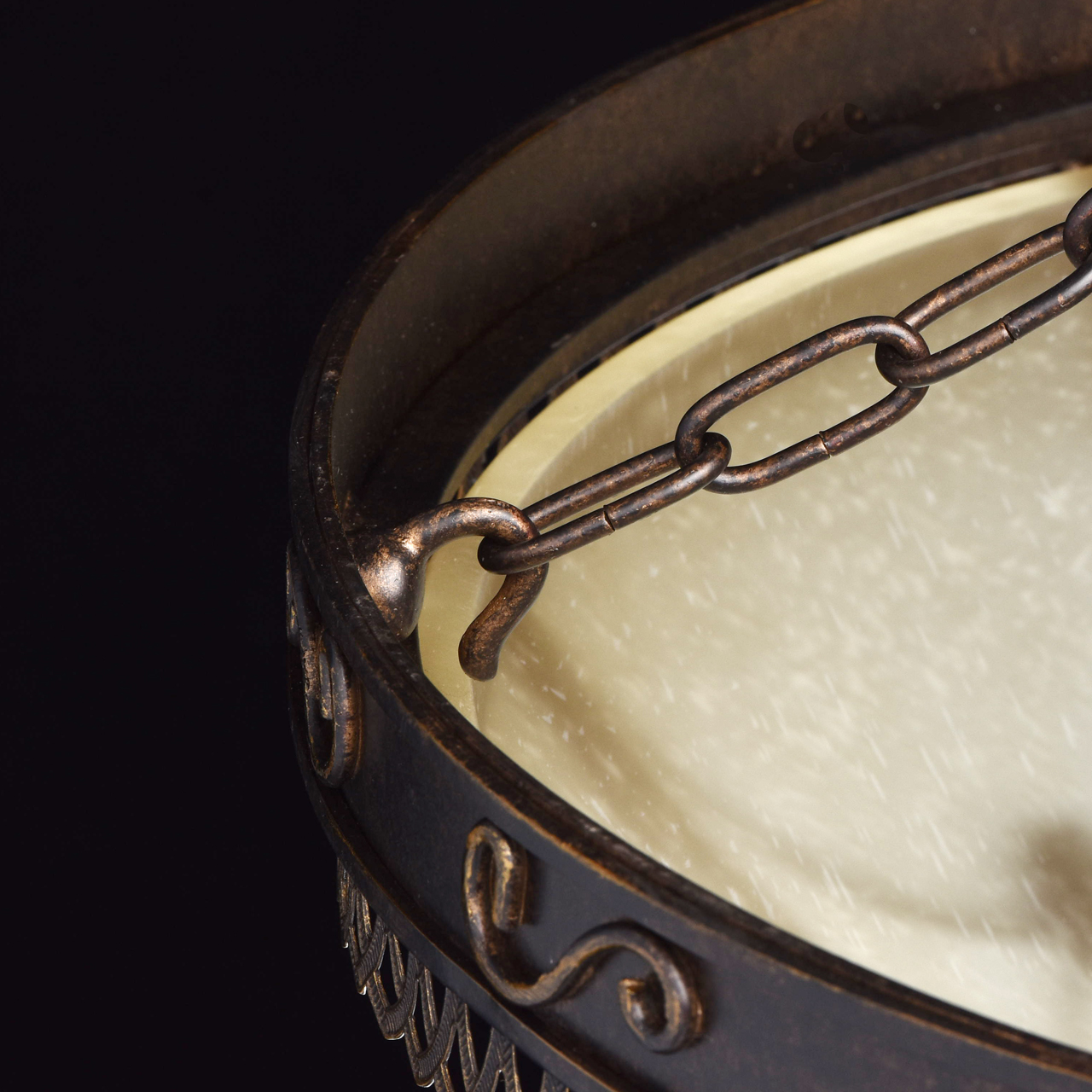 Потолочный светильник Айвенго запоминается необычным декором в виде паутинки из кованого металла поддерживающей объёмный стеклянный плафон искусно декорированный под старину. Компактный светильник украсит небольшие тематические помещения под стиль Кантри или станет отличным вариантом для зонального освещения.Преимущества модели