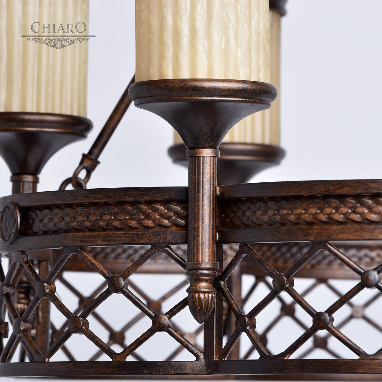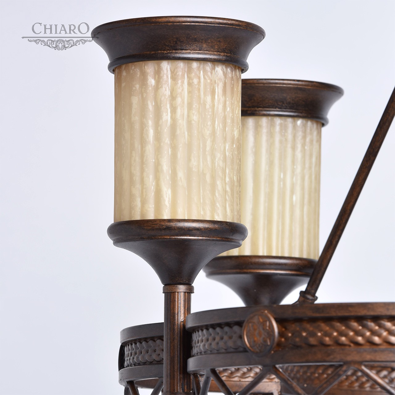 Искусно стилизованный светильник имеет большое значение для создания атмосферы средневекового замка в декорируемом помещении. Основное внимание в светильнике Айвенго обращает на себя декоративная металлическая лента, на которой вручную выкован растительный орнамент с геральдической символикой, характерной для готического стиля. Широкий кованый пояс мягкими волнами удерживает подсвечники-факелы, выполненные из стекла с искусно состаренной поверхностью. Коричнево-охристая цветовая гамма светильника Айвенго идеально впишется в интерьер с деревянной и каменной отделкой, украшенный роскошными гобеленами!Преимущества модели