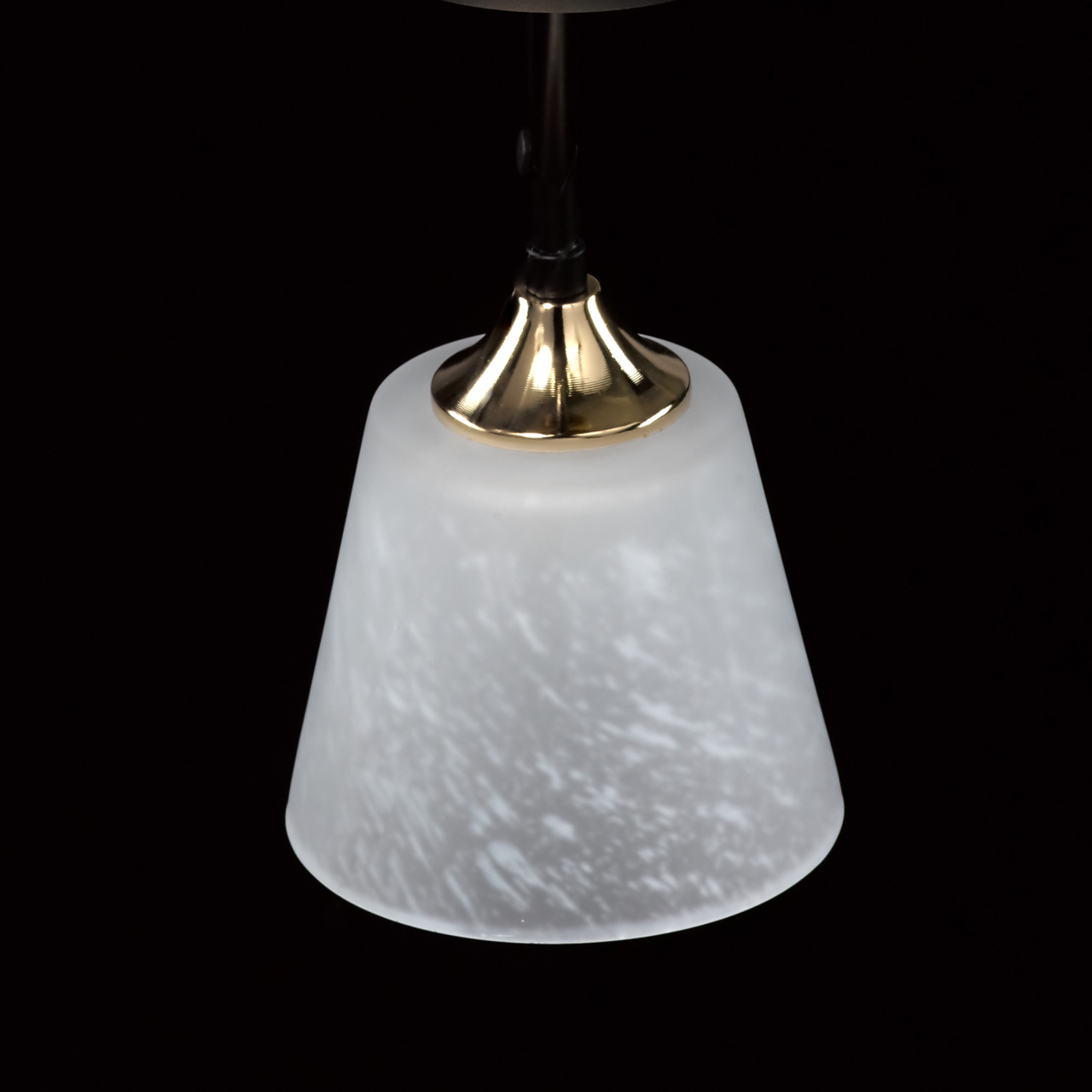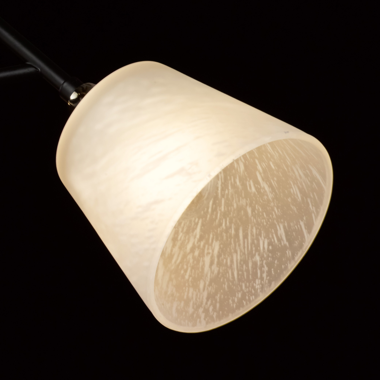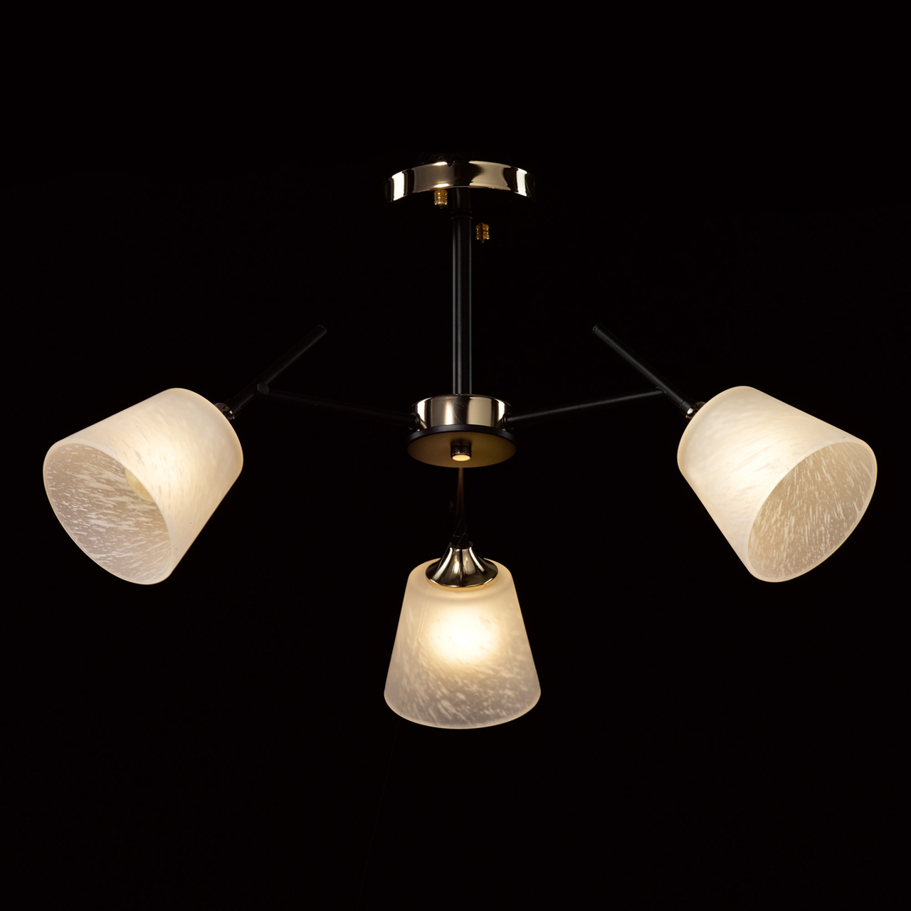 Основание светильника выполнено из металла и окрашено в черный цвет. Отдельные элементы основания гальванизированы в цвет золота. Плафоны выполнены из алебастрового стекла.Тип помещения