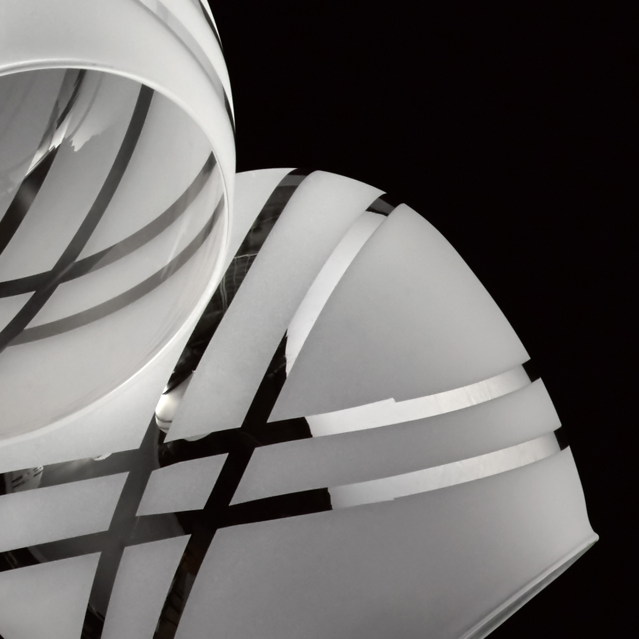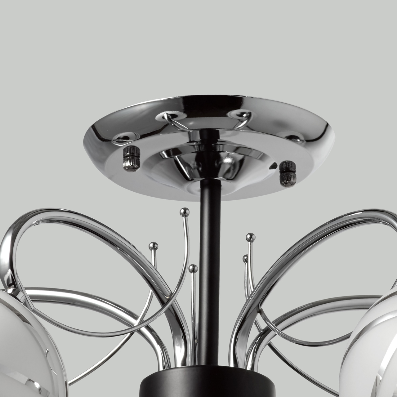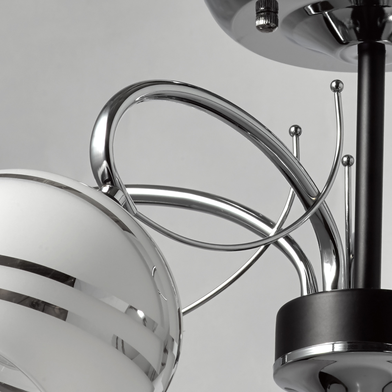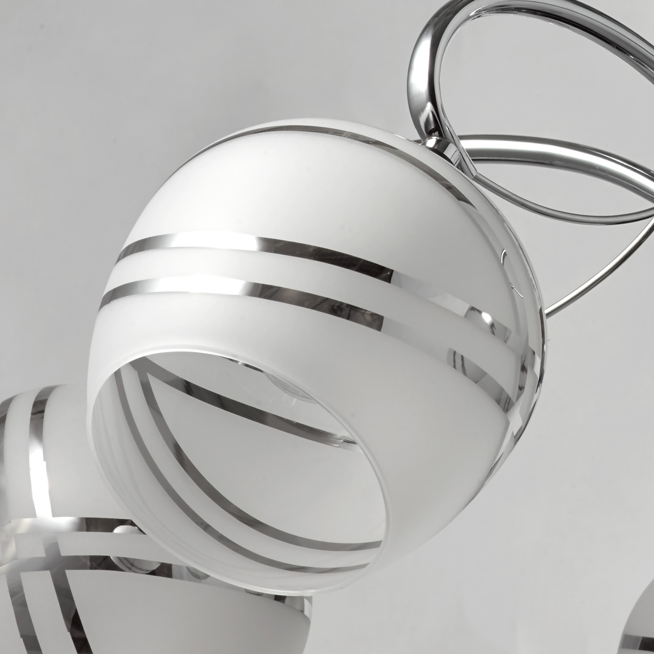 Универсальная модель для интерьеров в современном стиле. Плафоны из матового стекла с глянцевым рисунком обеспечивают мягкий комфортный свет. Компактная высота модели идеальна для стандартной высоты потолка. Заменяемые источники света удобны в эксплуатации.Преимущества модели