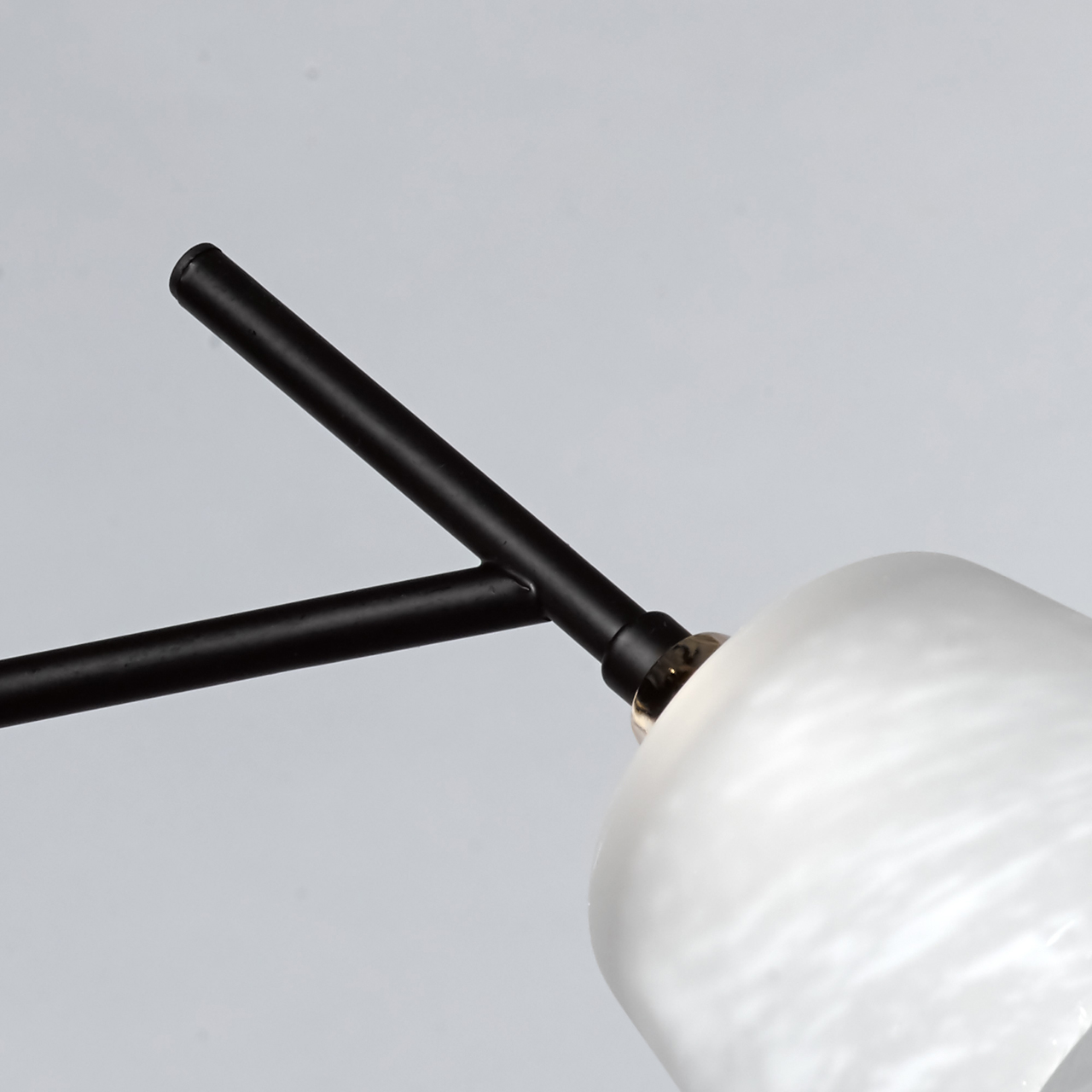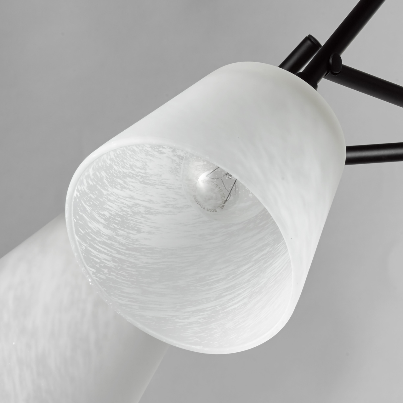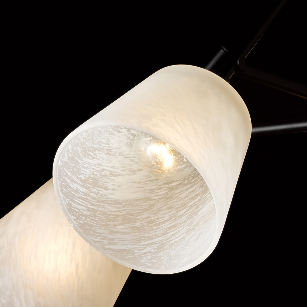 Основание светильника выполнено из металла и окрашено в черный цвет. Отдельные элементы основания гальванизированы в цвет золота. Плафоны выполнены из алебастрового стекла.Тип помещения
