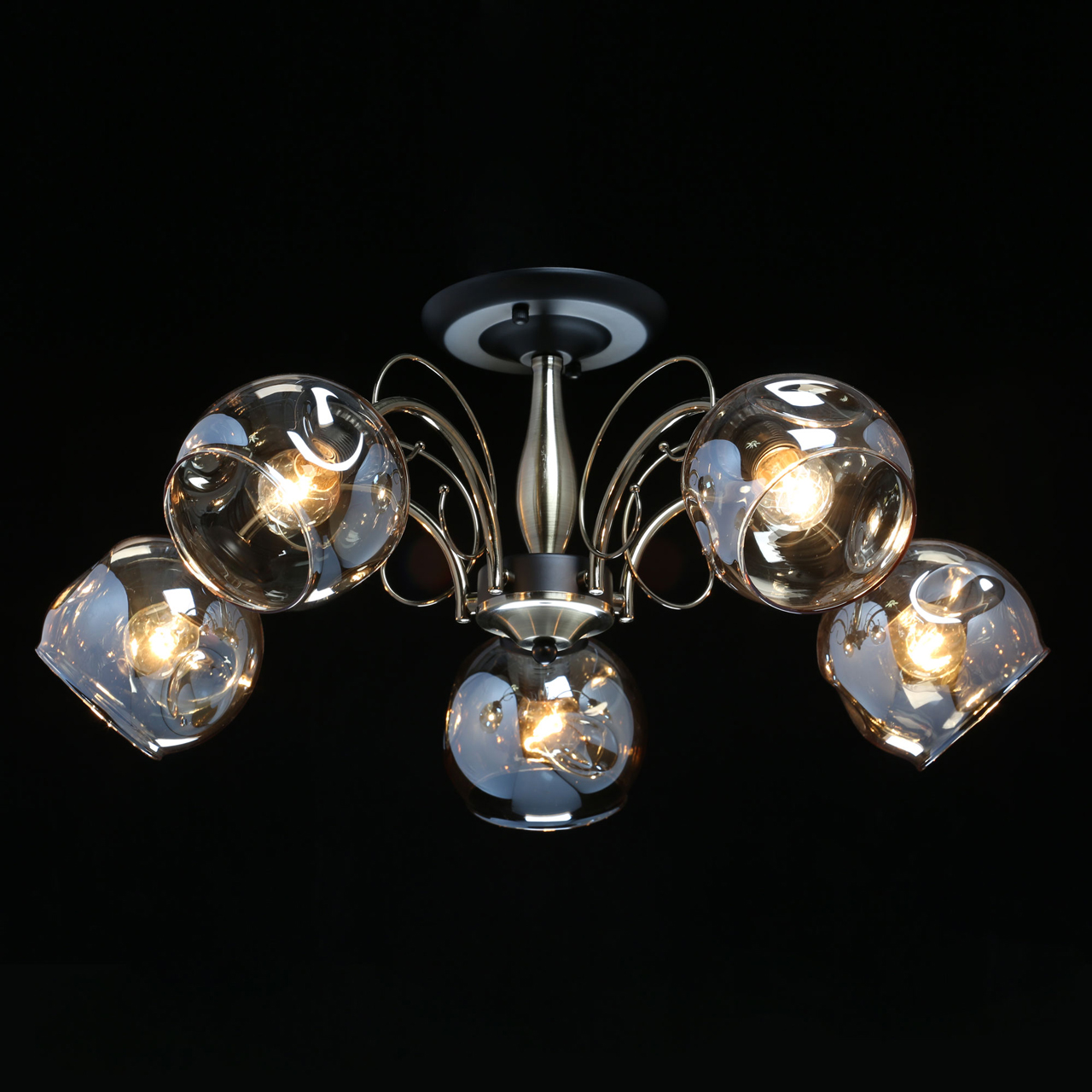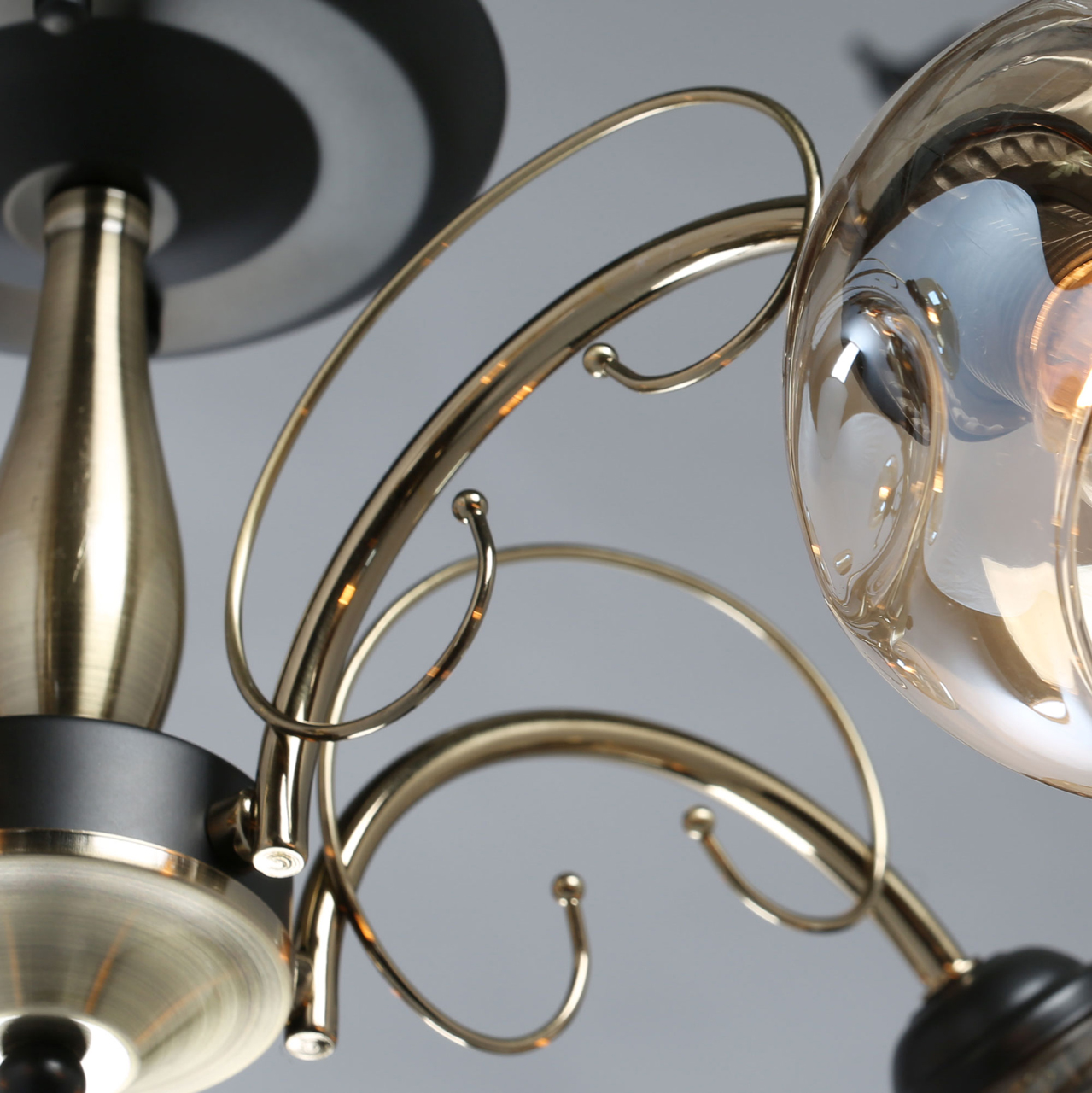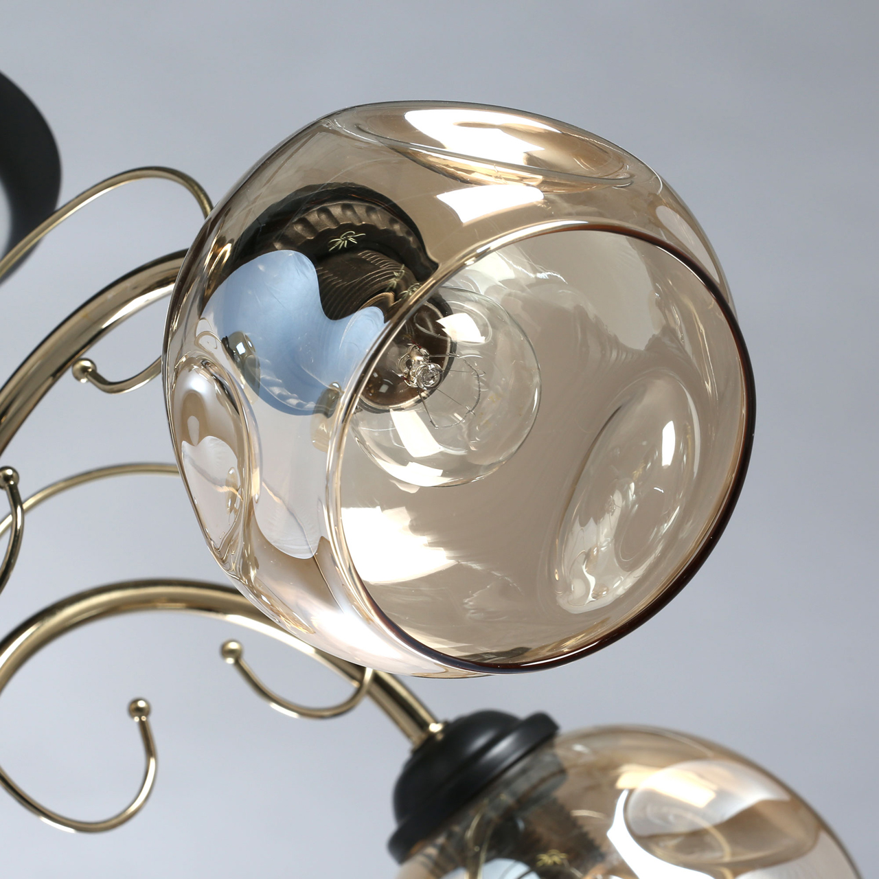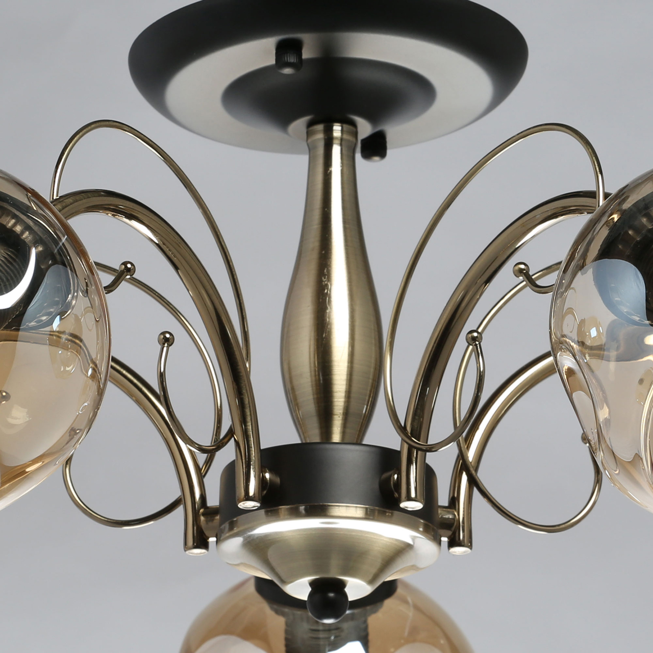 Трендовое сочетание металлов черного и бронзового цвета . Оригинальные тонированные плафоны обеспечивают мягкий световой поток. Компактная высота светильника идеальна для стандартной высоты потолка. Заменяемые источники света удобны в эксплуатации.Стилевые решения интерьера