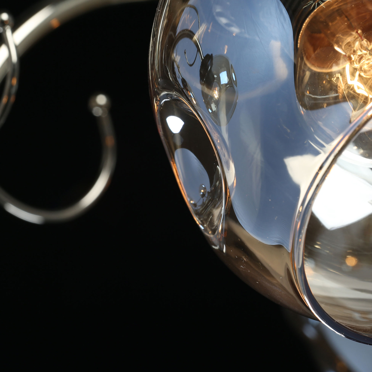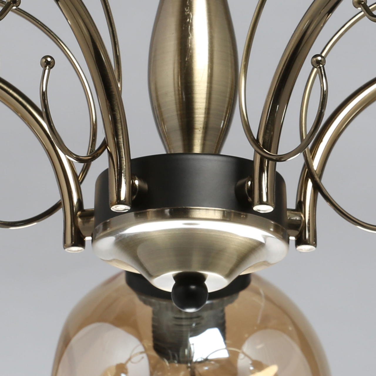 Основание светильника выполнено из металла и гальванизировано в цвет античной бронзы. Отдельные элементы основания окрашены в черный цвет. Cстеклянные плафоны отлиты в сложную форму и гальванизированы в цвет шампань.Тип помещения