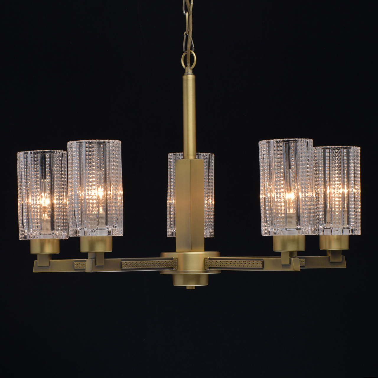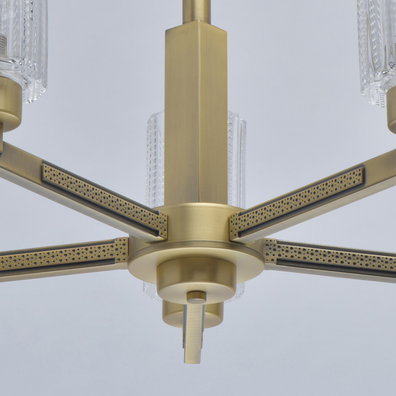 Модный дизайн в американском стиле. Плафоны толстостенного рельефного стекла смотрятся внушительно и дорого. Корпус светильника актуального цвета латуни Рожки выполнены по технологии художественного литья Полная семья решает задачи общего и зонального освещения.Стилевые решения интерьера