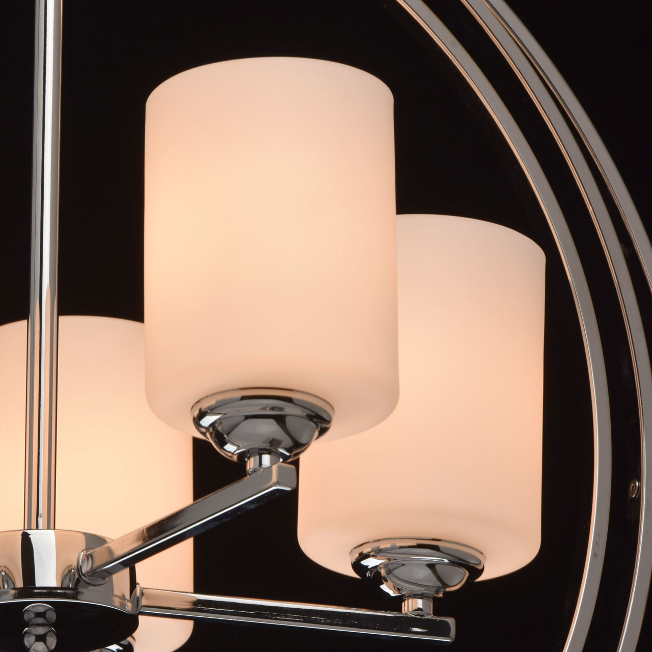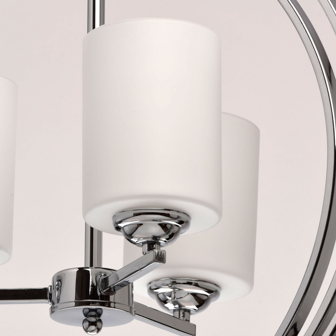 Основание: металл, гальванизация в цвет хрома. Внутренние кольца поворачиваются. Плафоны: стекло, окрашенное в массе в белый цвет.Тип помещения