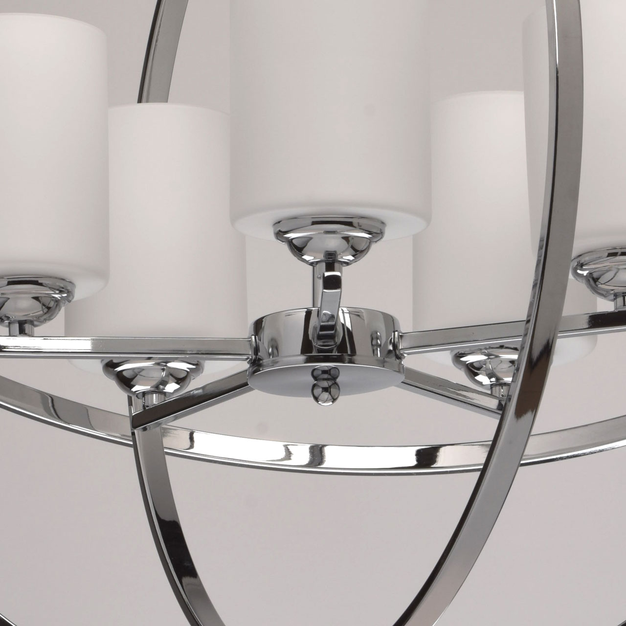 Необычный дизайн люстры из коллекции «Альгеро» оценят поклонники стиля лофт. Хромированное металлическое основание гармонично сочетается с белыми стеклянными плафонами. Но главная изюминка композиции – три сферы, окутывающие источники света. Они легко вращаются, позволяя создавать новые оригинальные композиции.Преимущества модели