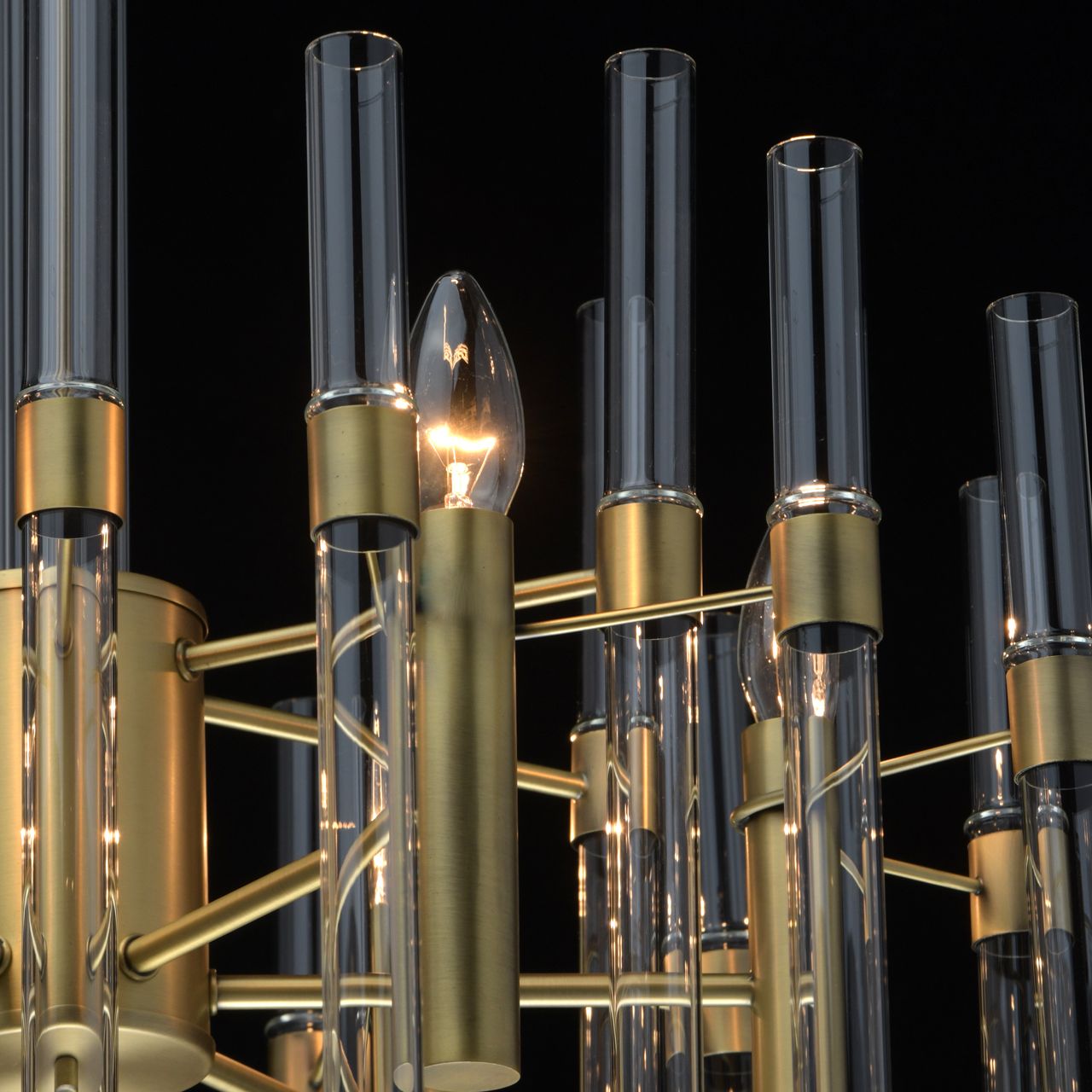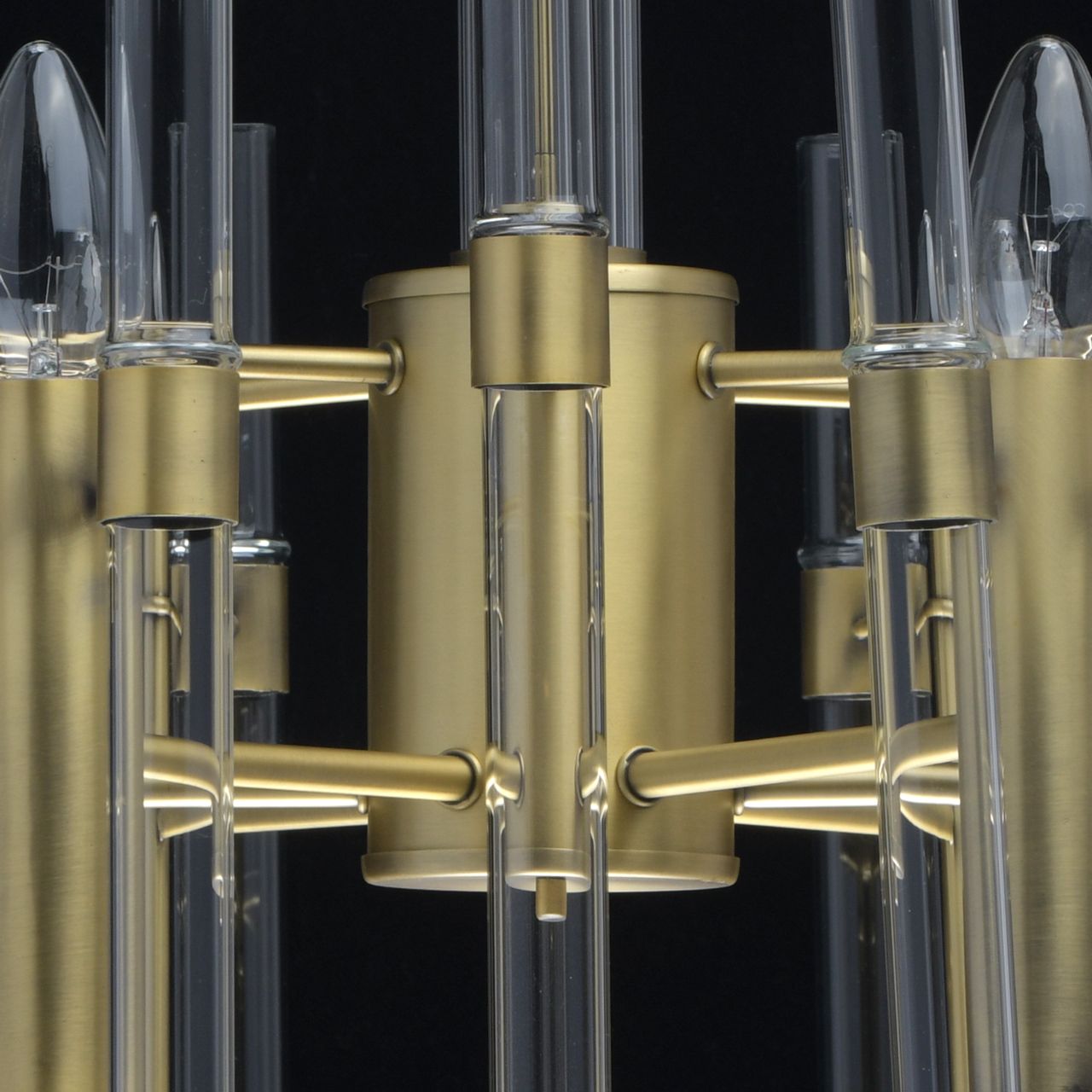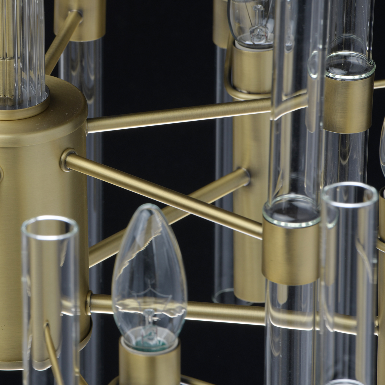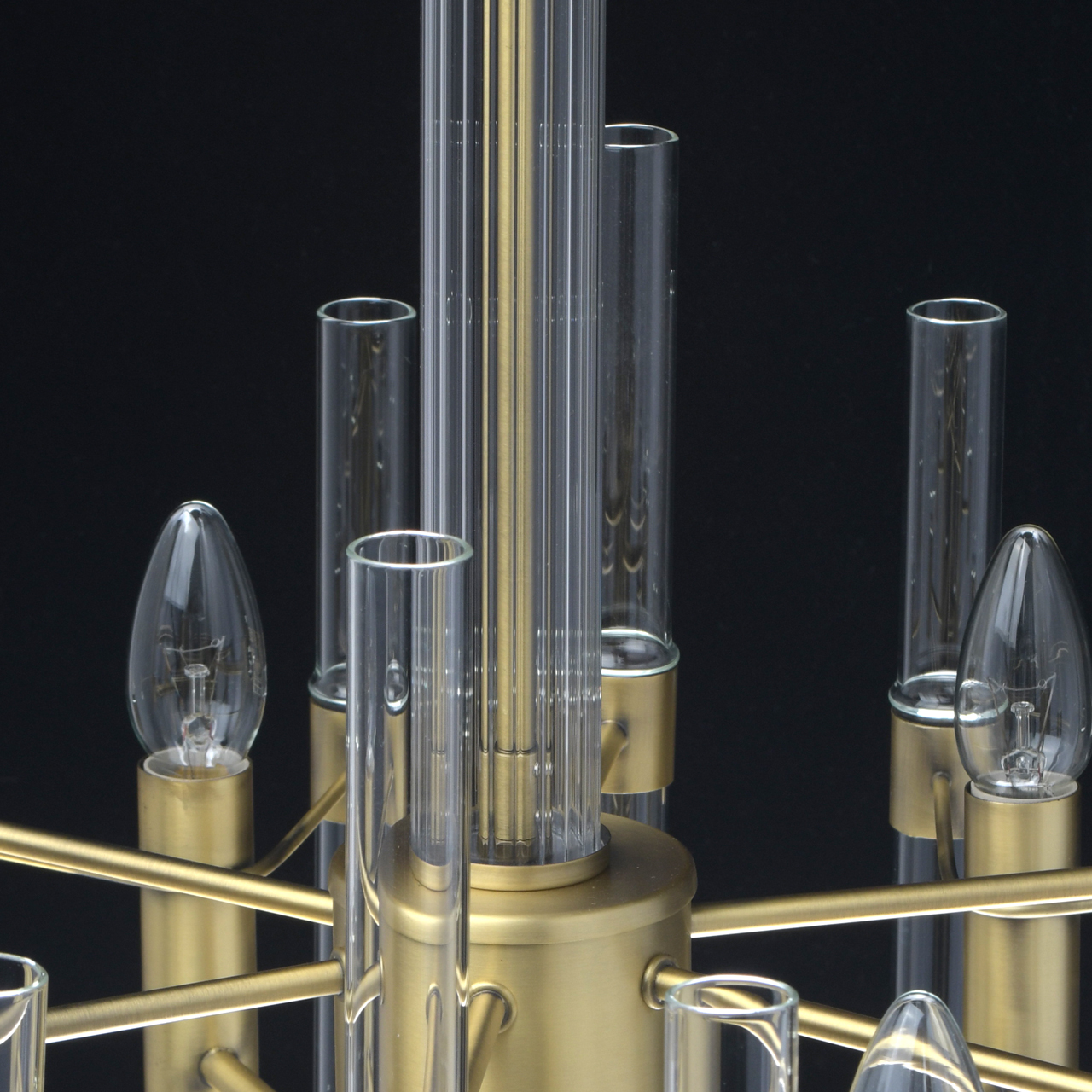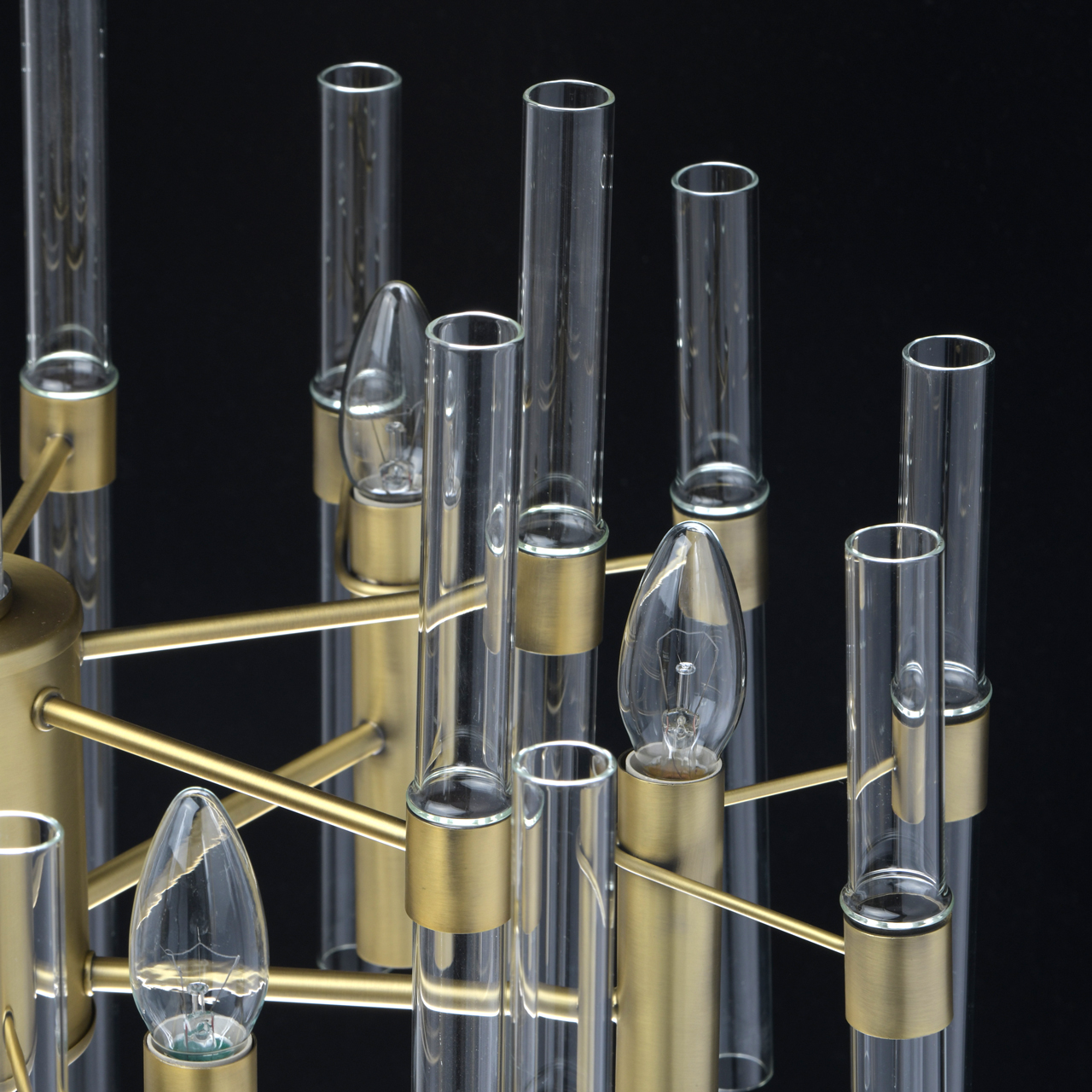 Основание светильника выполнено из металла и гальванизировано в цвет латуни с патинированием. Декор в виде стеклянных полых трубок.Тип помещения