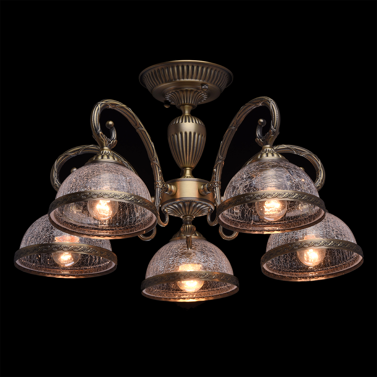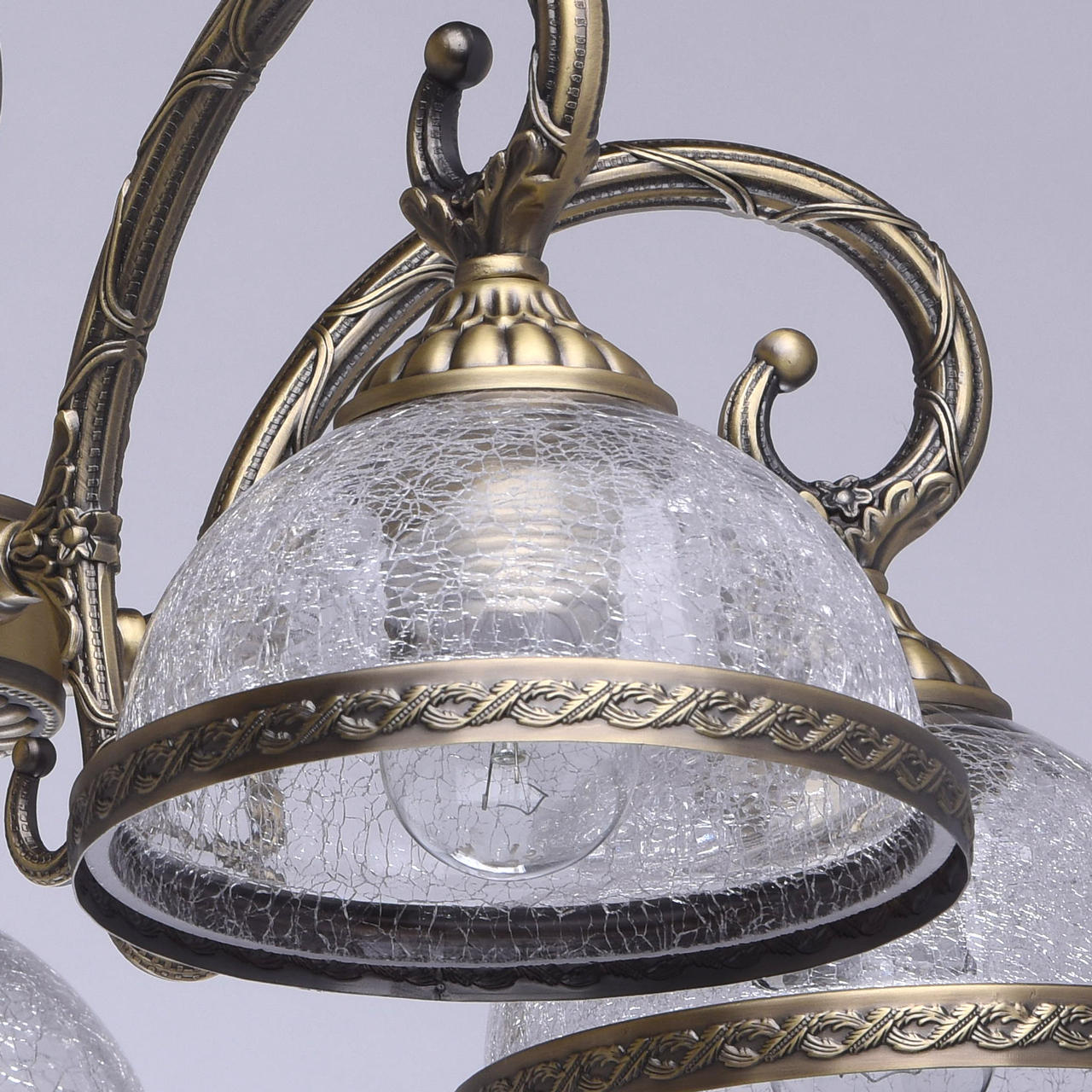 Класический актуальный во все времена дизайн Арматура в цвет бронзы идеальное решение для классического интерьера Плафоны из кракелированного стекла делают люстру оригинальной Опущеные вниз плафоны увеличивают площадь освещенияСтилевые решения интерьера