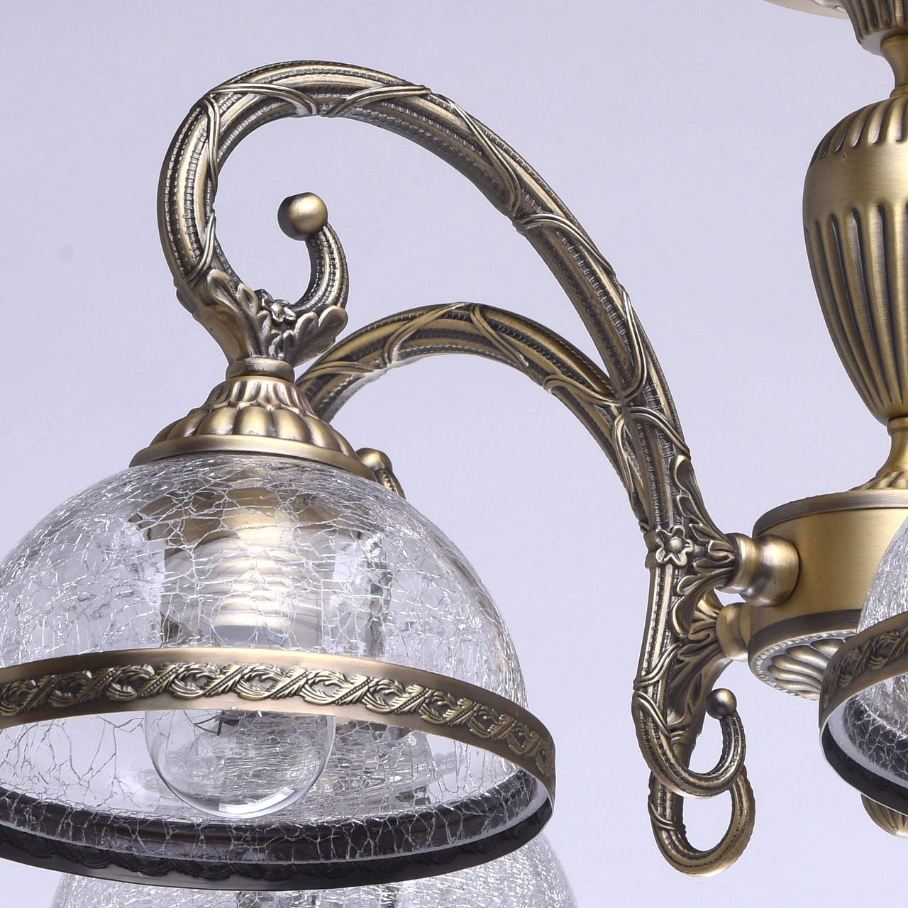 Металлическое основание цвета античной бронзы, плафоны из прозрачного льдистого стеклаТехнология производства