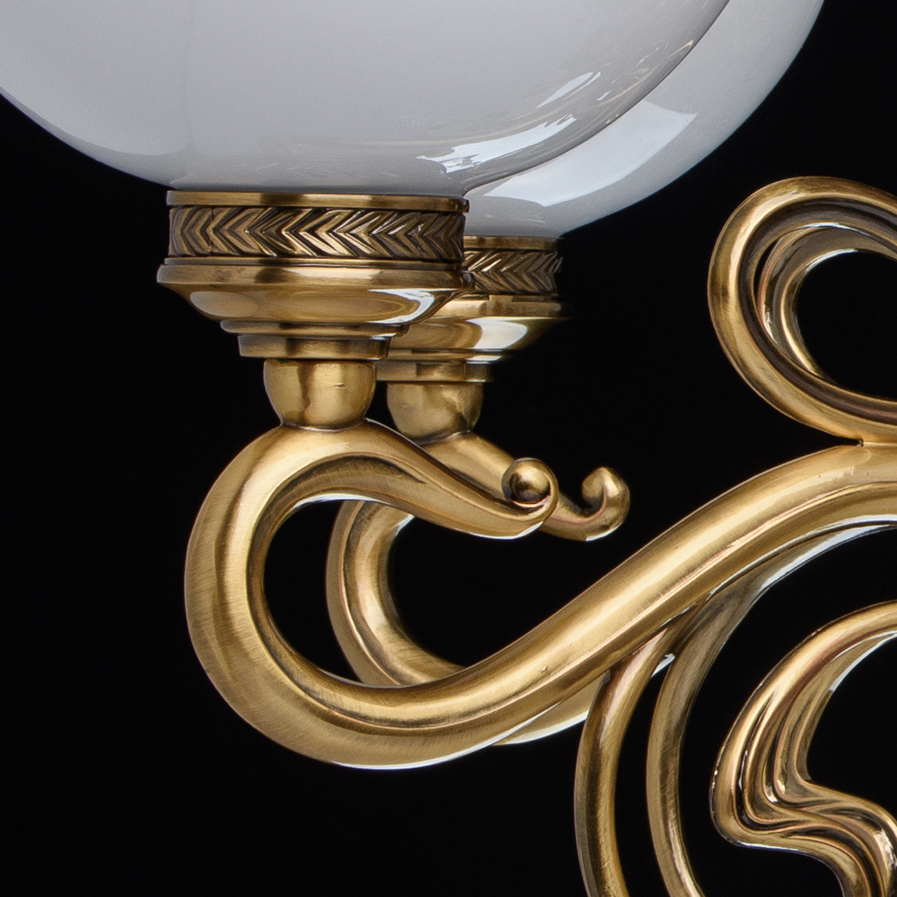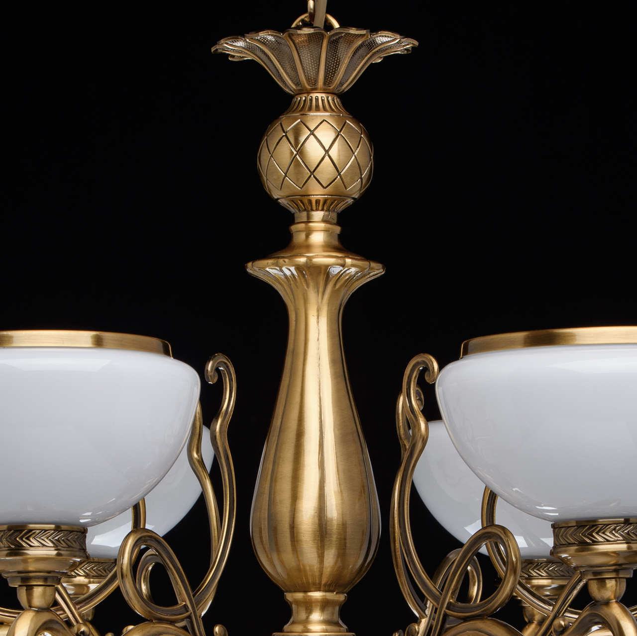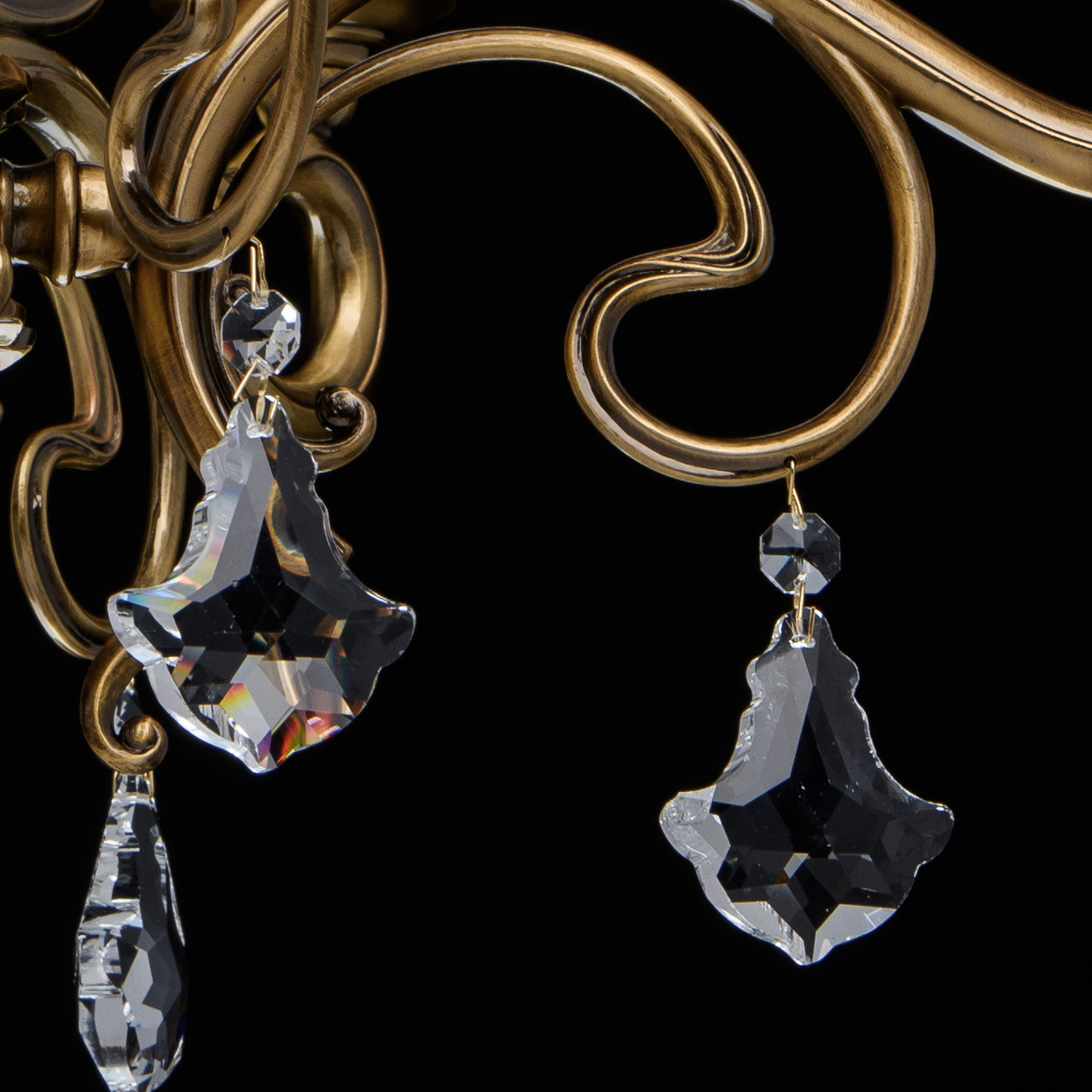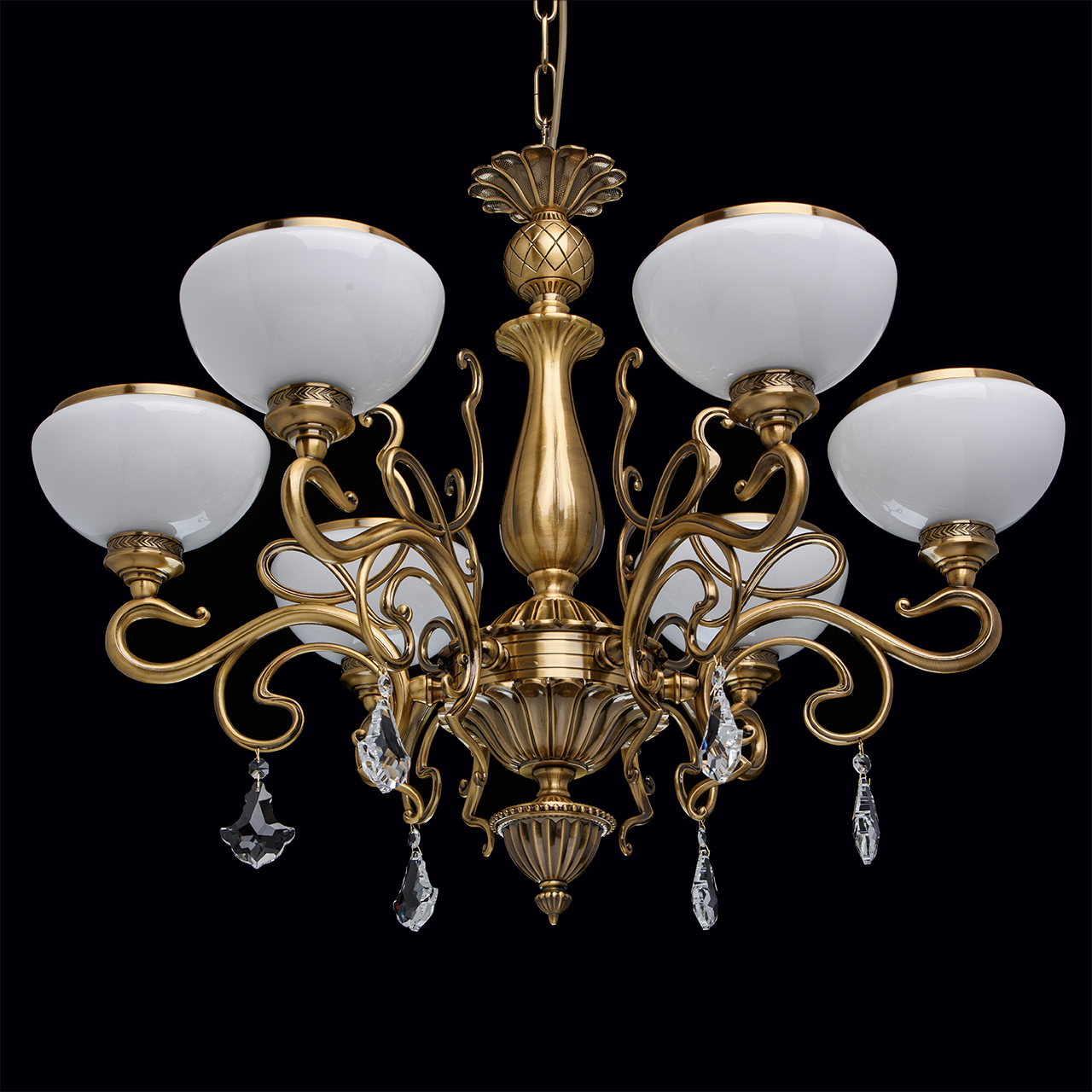 Металлическое основание цвета античной медовой бронзы, плафоны из опалового стекла, декоративные подвески из хрусталяТехнология производства