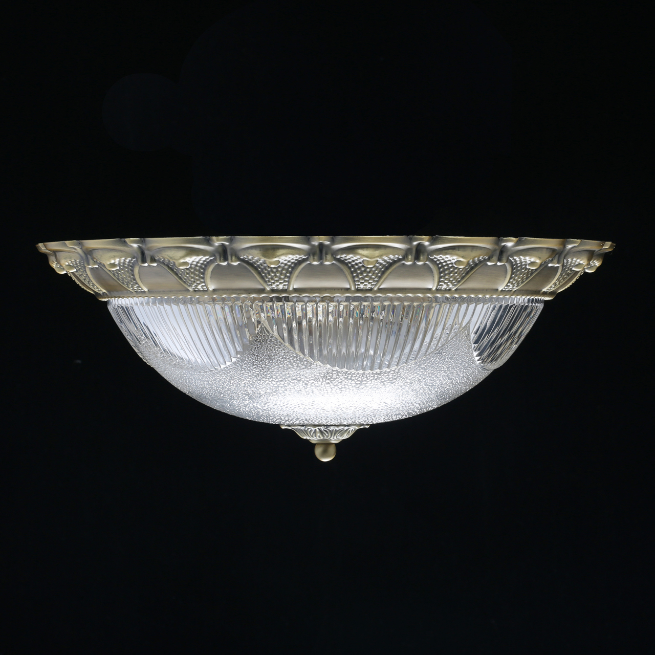 Основание светильника выполнено из металла то технологии прессования и гальванизировано в цвет античной бронзы. Прозрачный плафон выполнен из фактурного стекла и отлит в сложную форму.Тип помещения