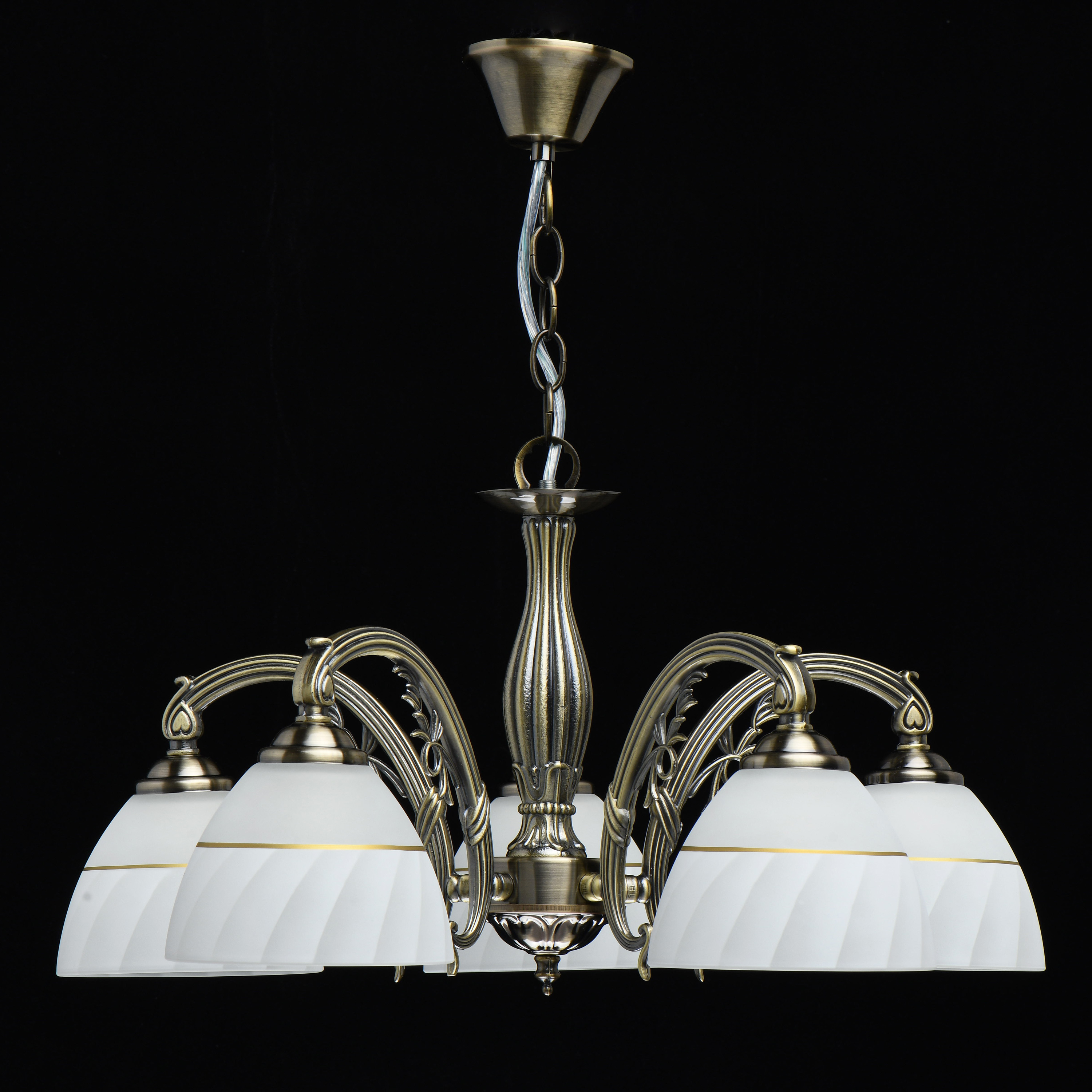 Популярный цвет античной бронзы основания светильника. Белые плафоны с декоративным кантом направлены вниз. Декор из художественного литья на рожках и основания модели. Заменяемые источники света удобны в эксплуатации. Регулирумая высота светильника за счет звеньев цепи.Стилевые решения интерьера